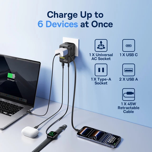 UGREEN 65W GaN Charger Quick Charge 4.0 3.0 USB C Charger For iPhone 17 16 15 Pro PD 3.0 Fast Charger For Macbook Laptop Tablet
