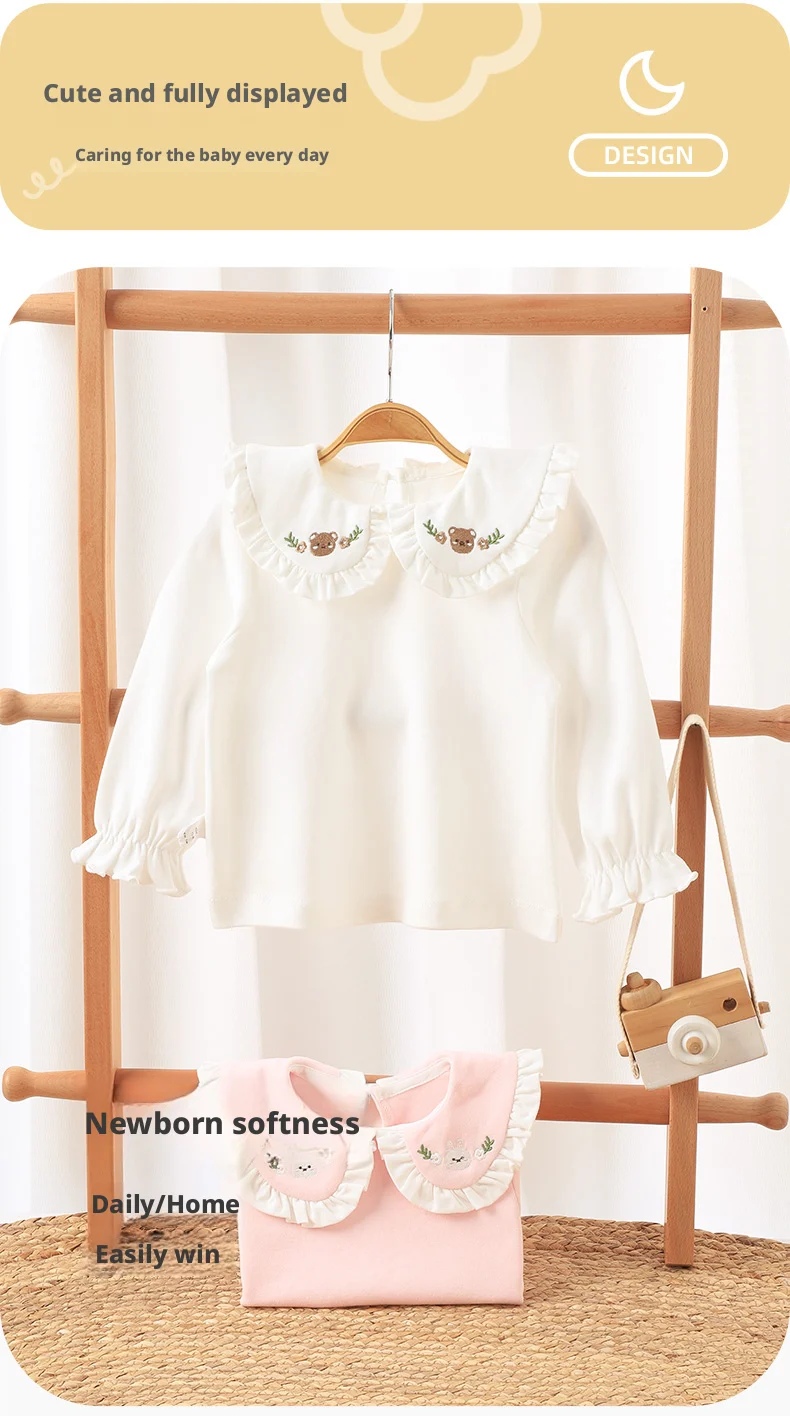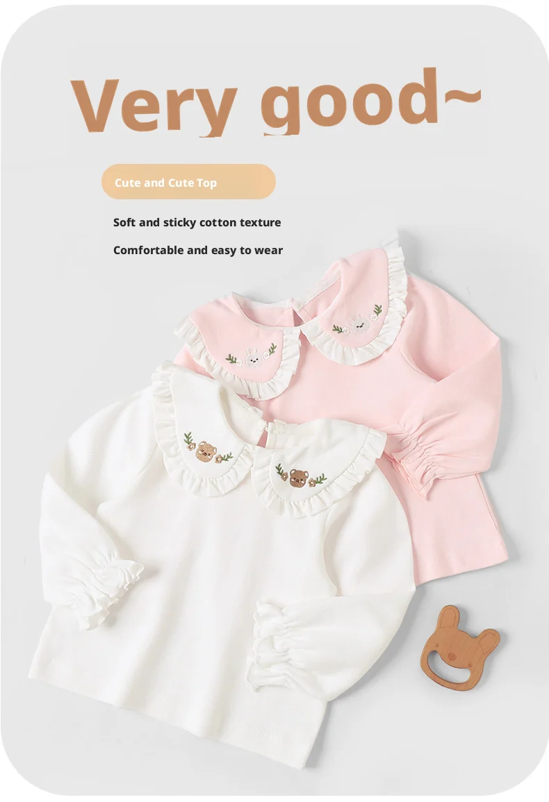 【Youqi】Chinese Baby Tops for Girls Aged 0-2 Years, Spring and Autumn Long-Sleeved Cute Tops, Stylish Toddler Base Shirts, Small Infant T-Shirts