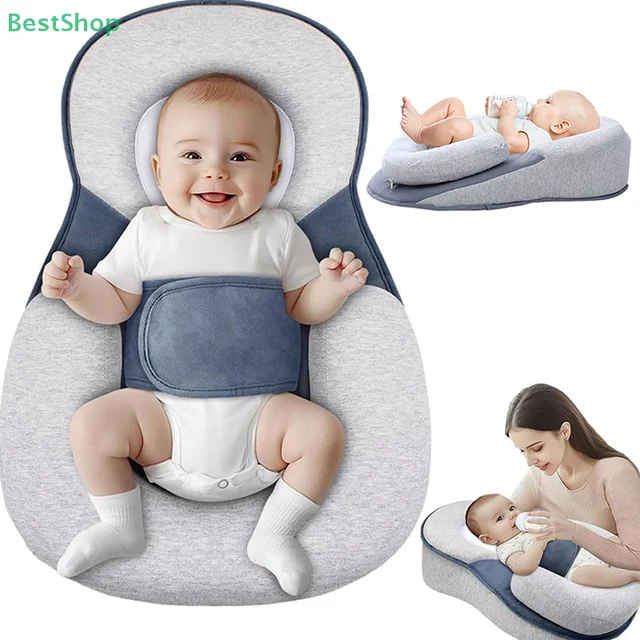 Safety Strap Baby Wedge Pillow for Newborn Baby Lounger Pillow Acid Reflux Breastfeeding Pillow for Reducing Spit-Up
