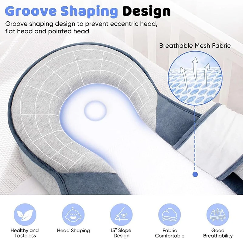 [Ergonomic Design]Features a 15-degree slope and groove-shaping design to properly support infant’s head and prevent flat head syndrome.
