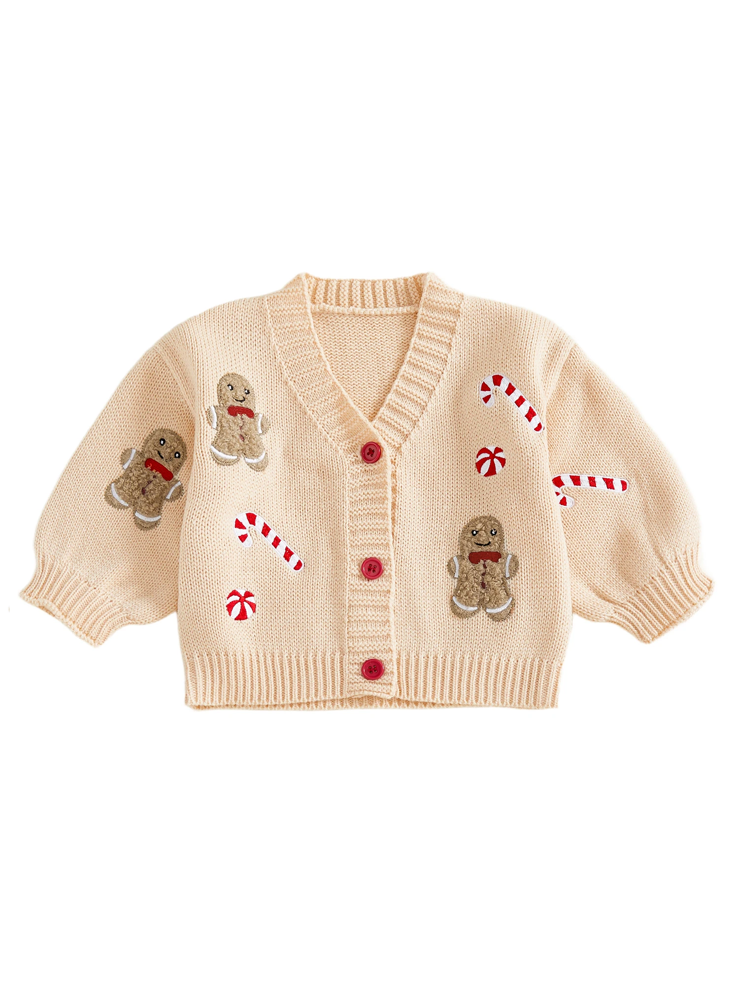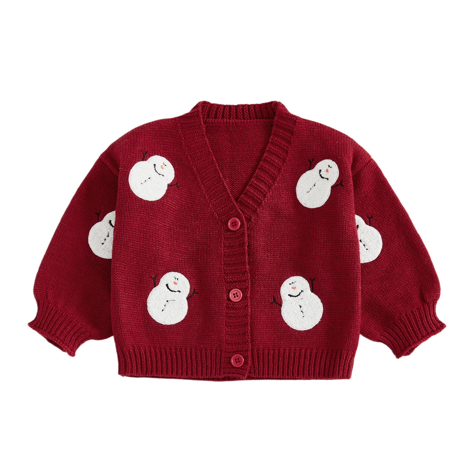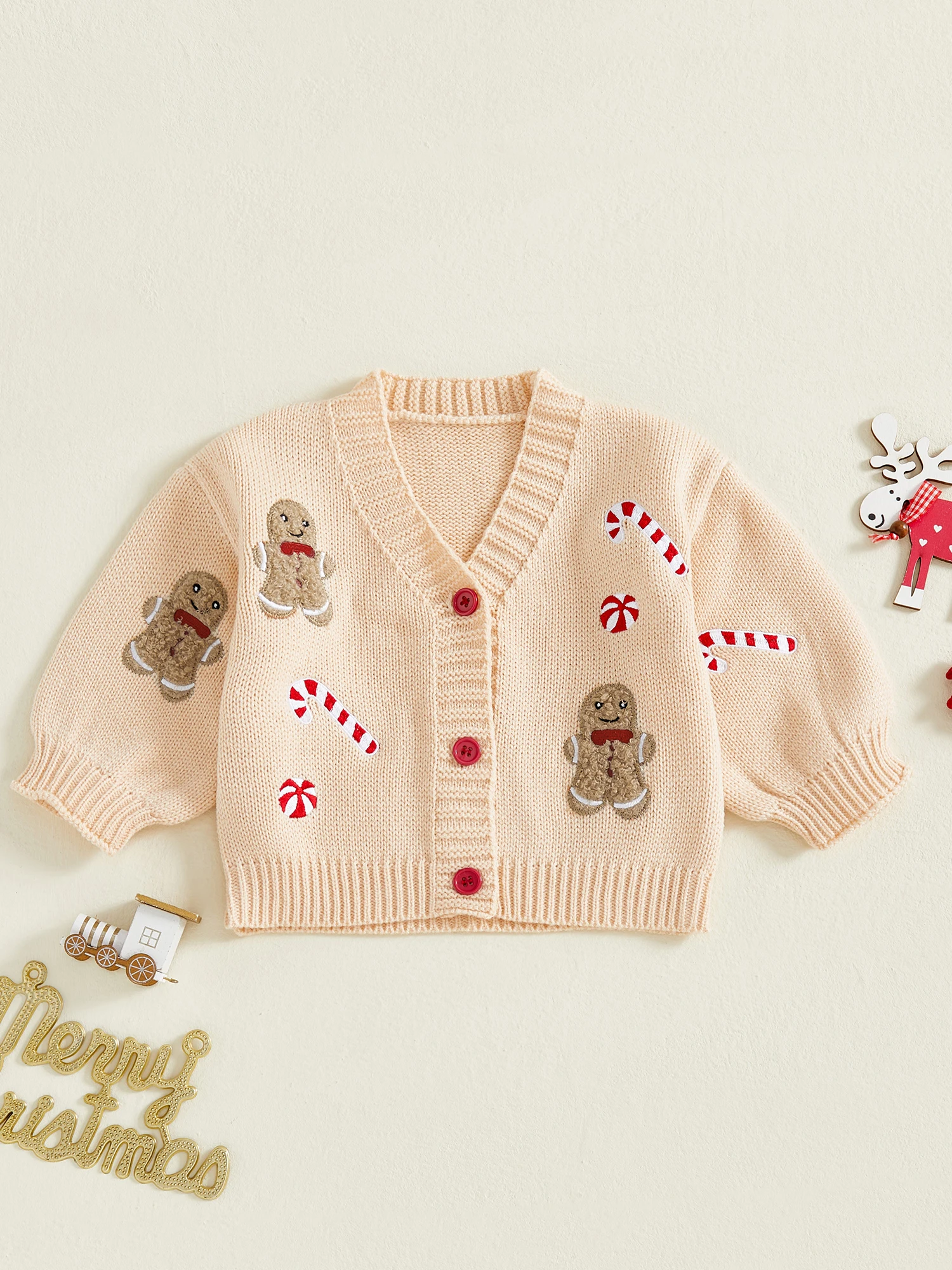 0-18M Baby Girl Christmas Cardigan Santa Gingerbread Man Clothes Long Lantern Sleeve Snowman Knit Sweater Winter Clothes