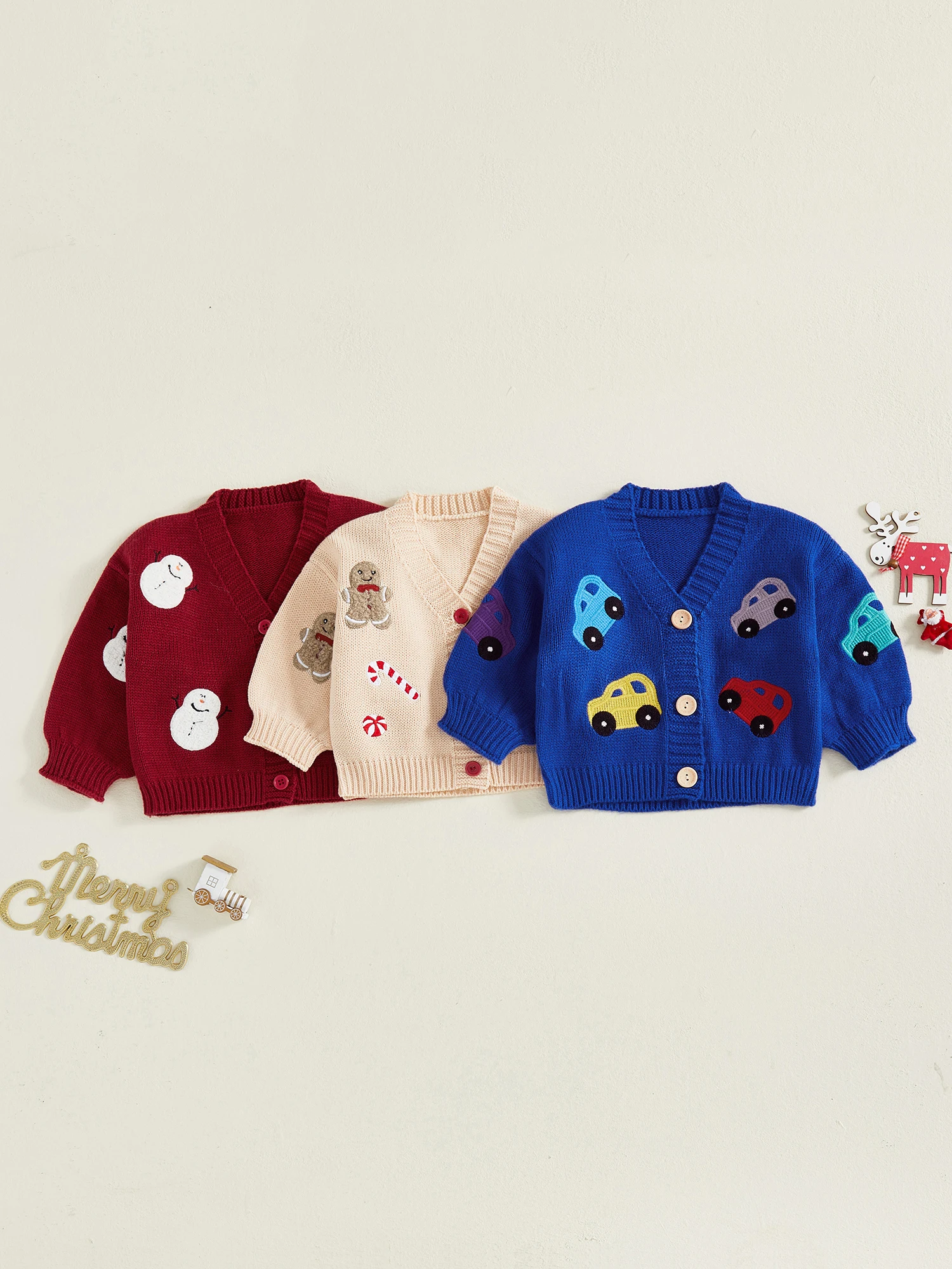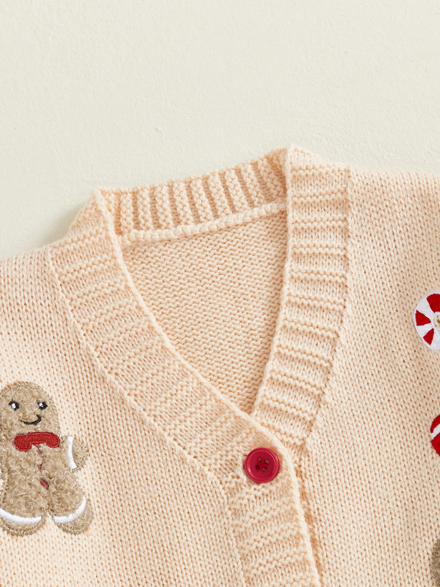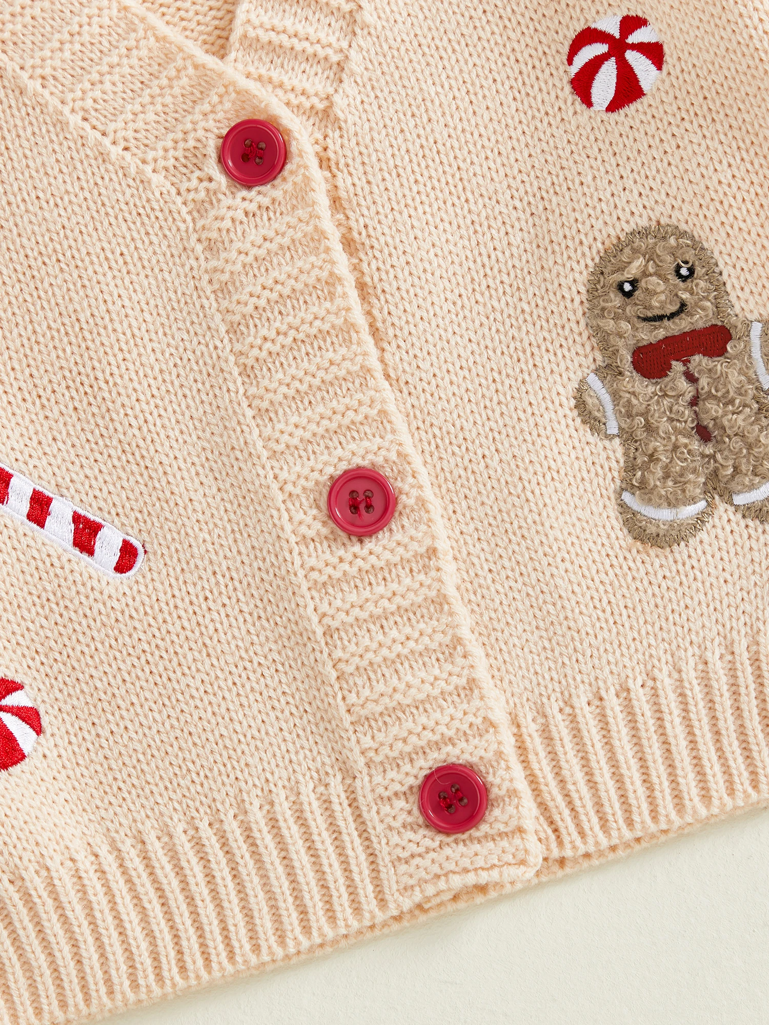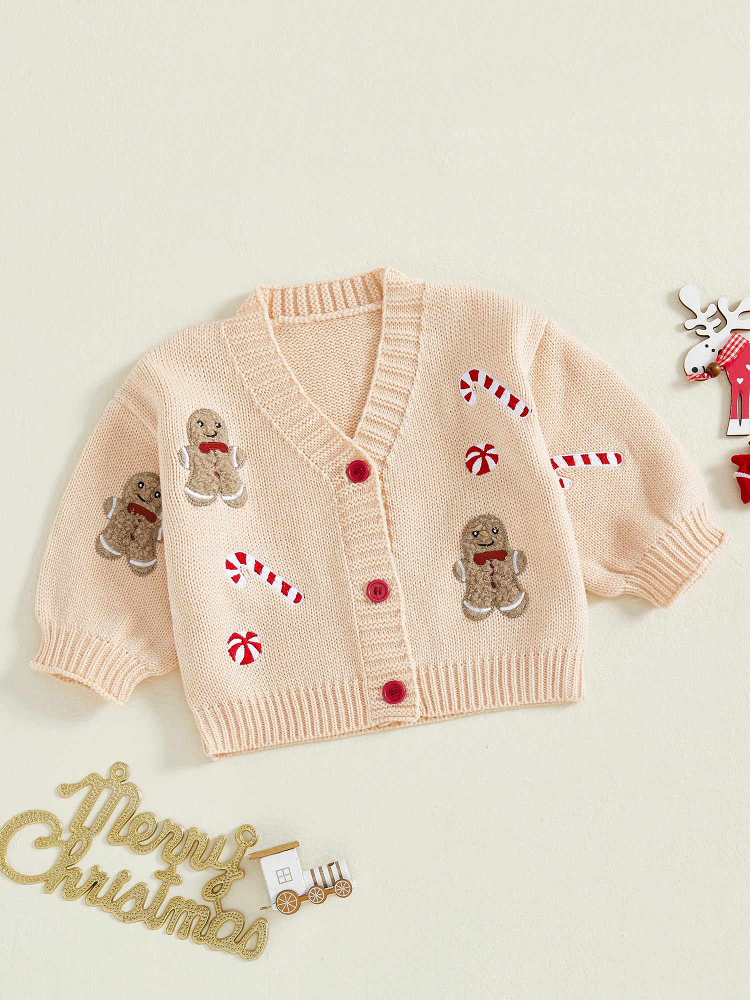 0-18M Baby Girl Christmas Cardigan Santa Gingerbread Man Clothes Long Lantern Sleeve Snowman Knit Sweater Winter Clothes