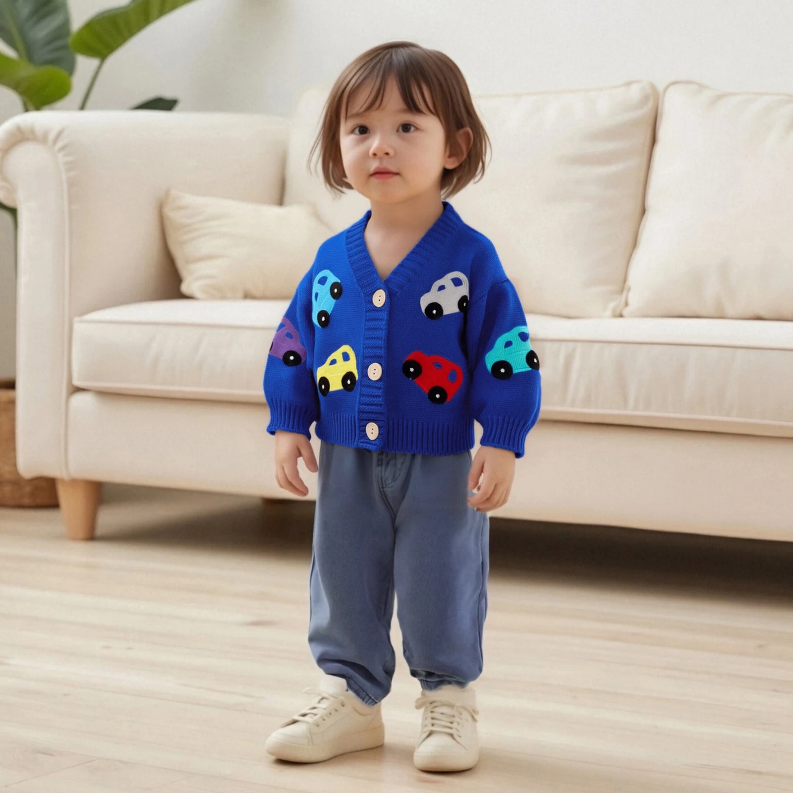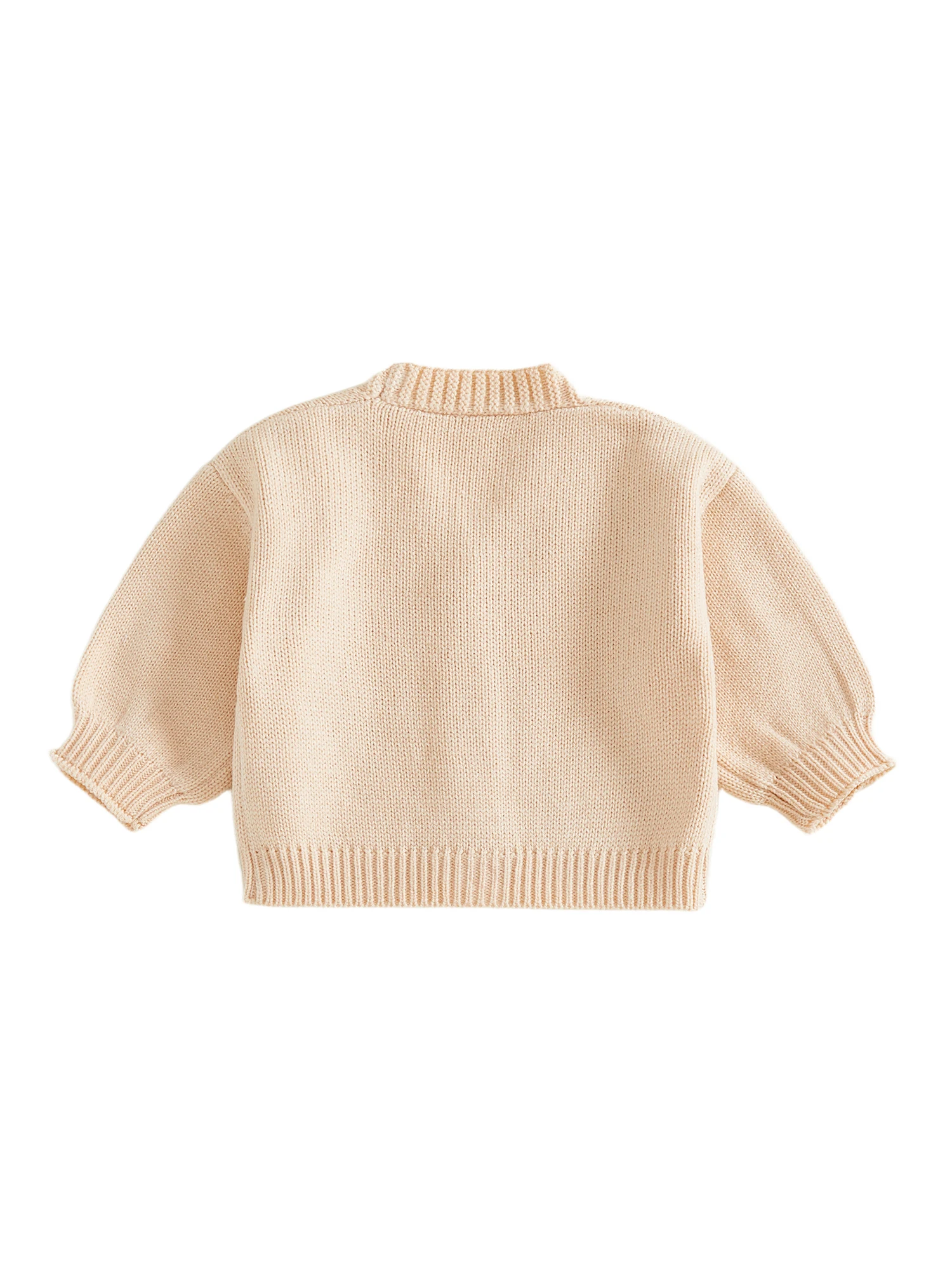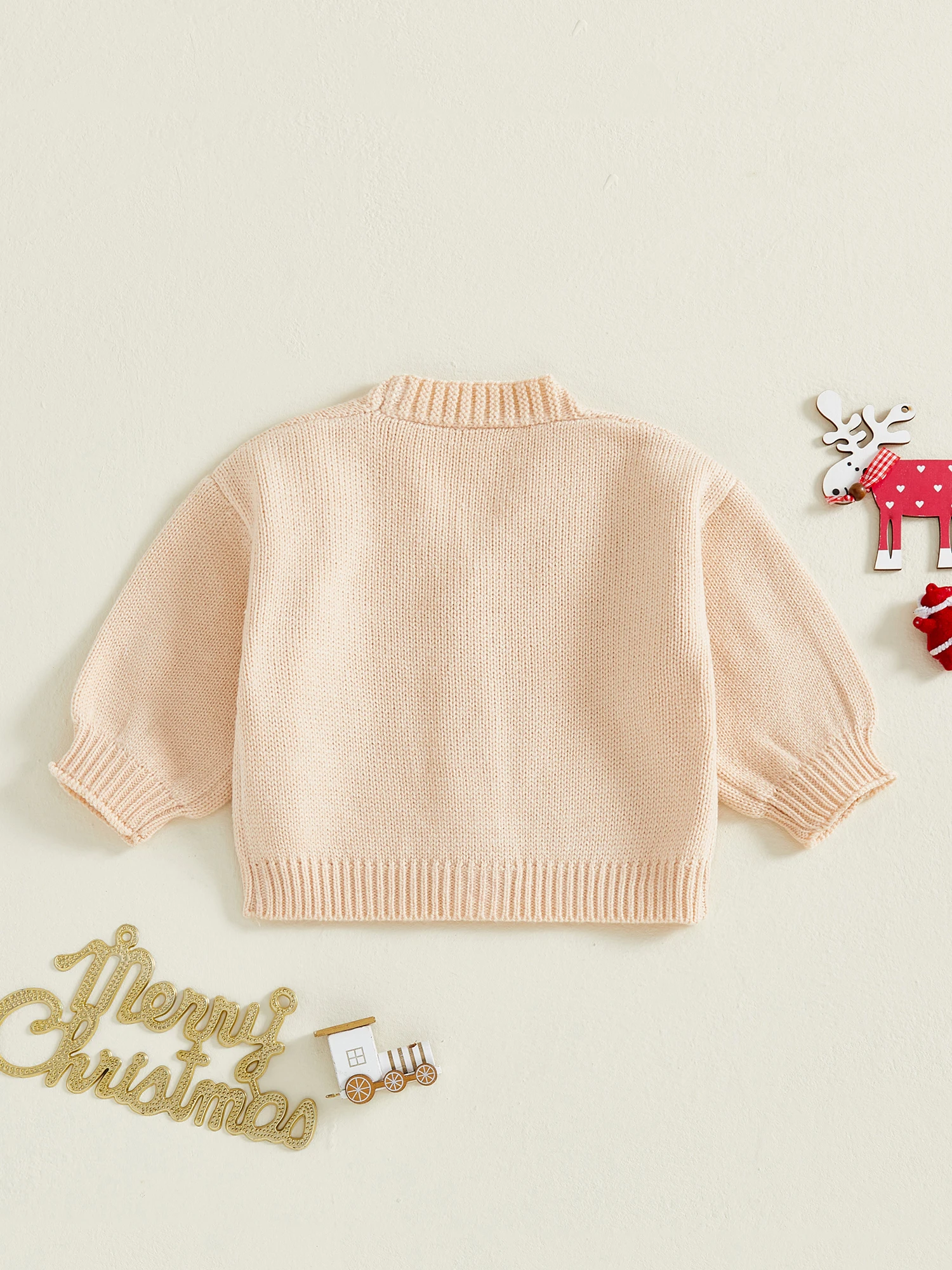 Baby Girl Christmas Cardigan Santa V Neck Long Lantern Sleeve Button-up Knitted Sweater Cute Winter Fall Clothes