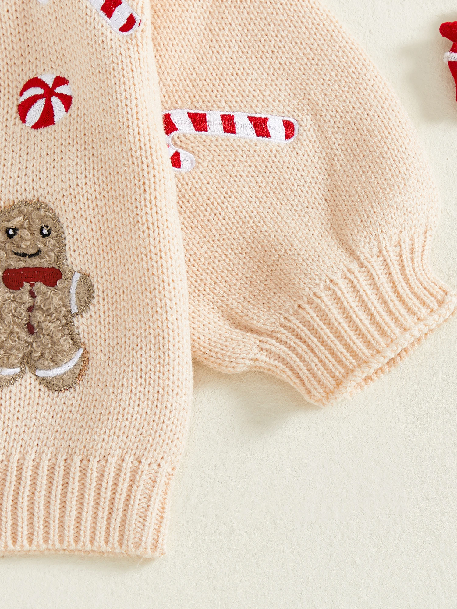 0-18M Baby Girl Christmas Cardigan Santa Gingerbread Man Clothes Long Lantern Sleeve Snowman Knit Sweater