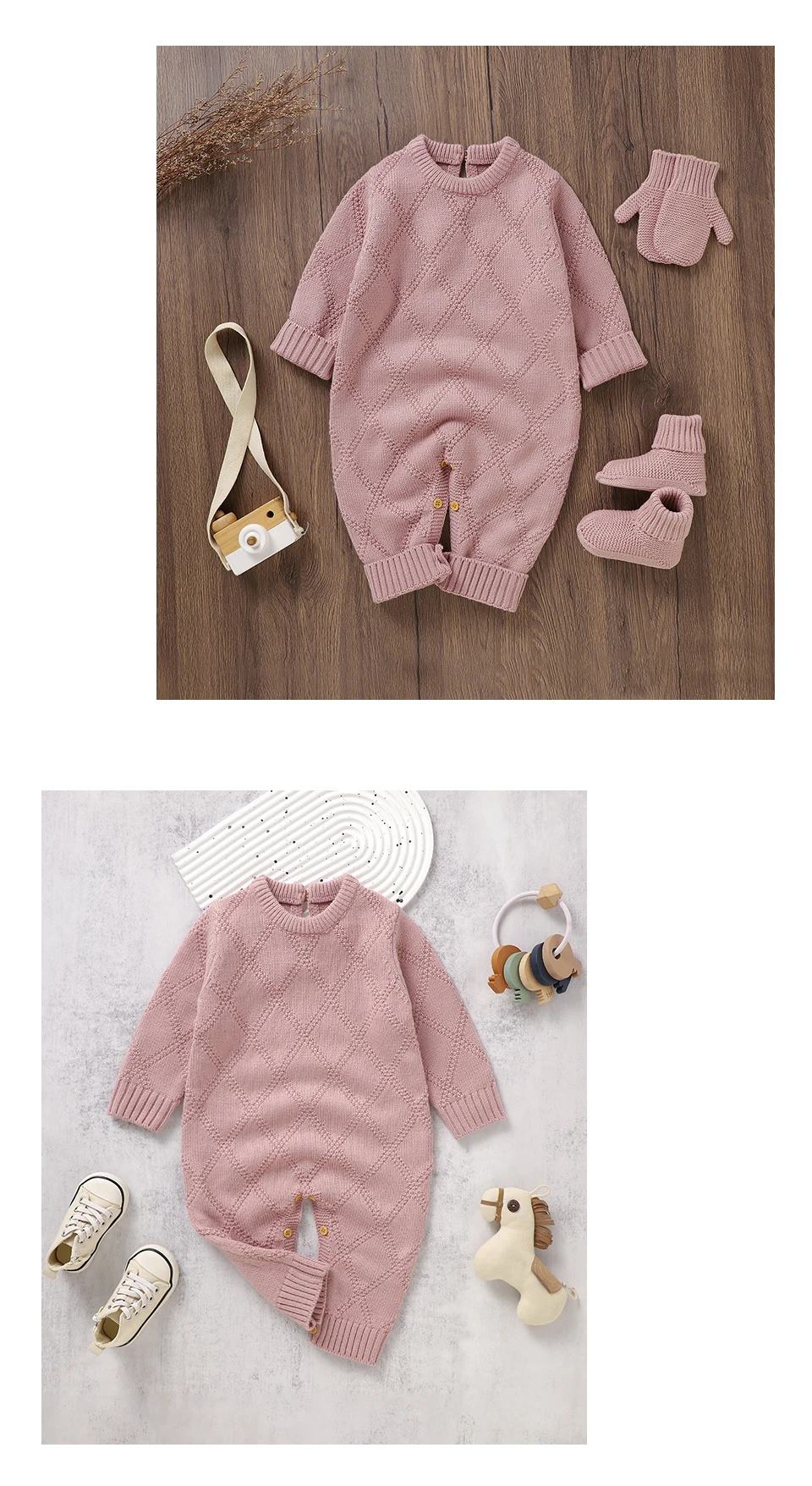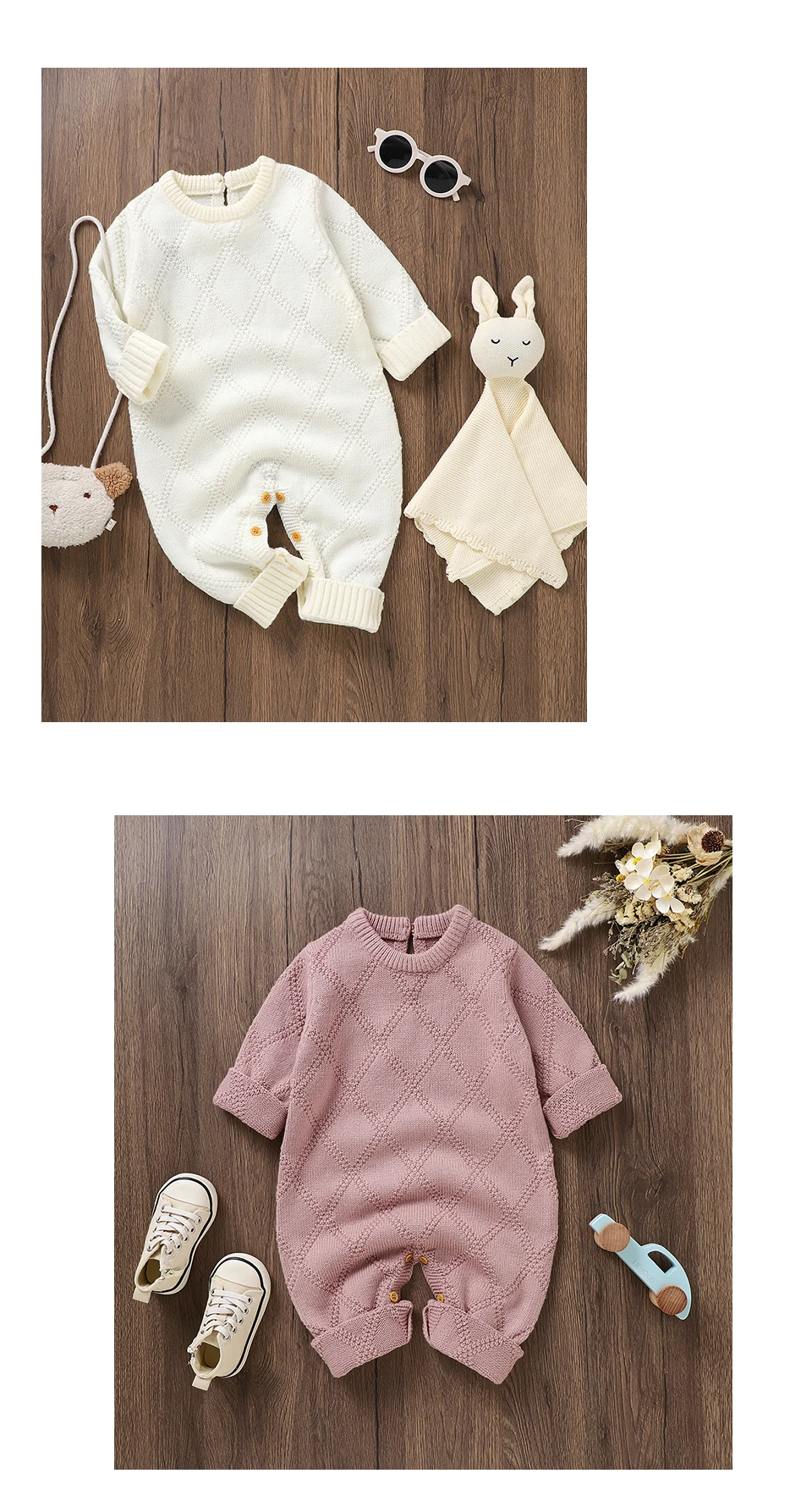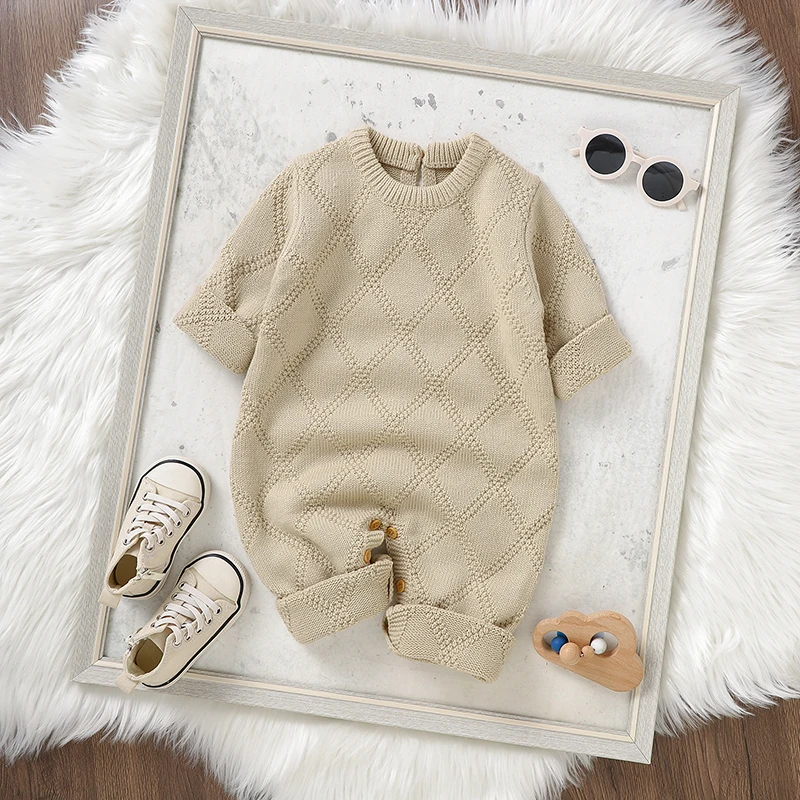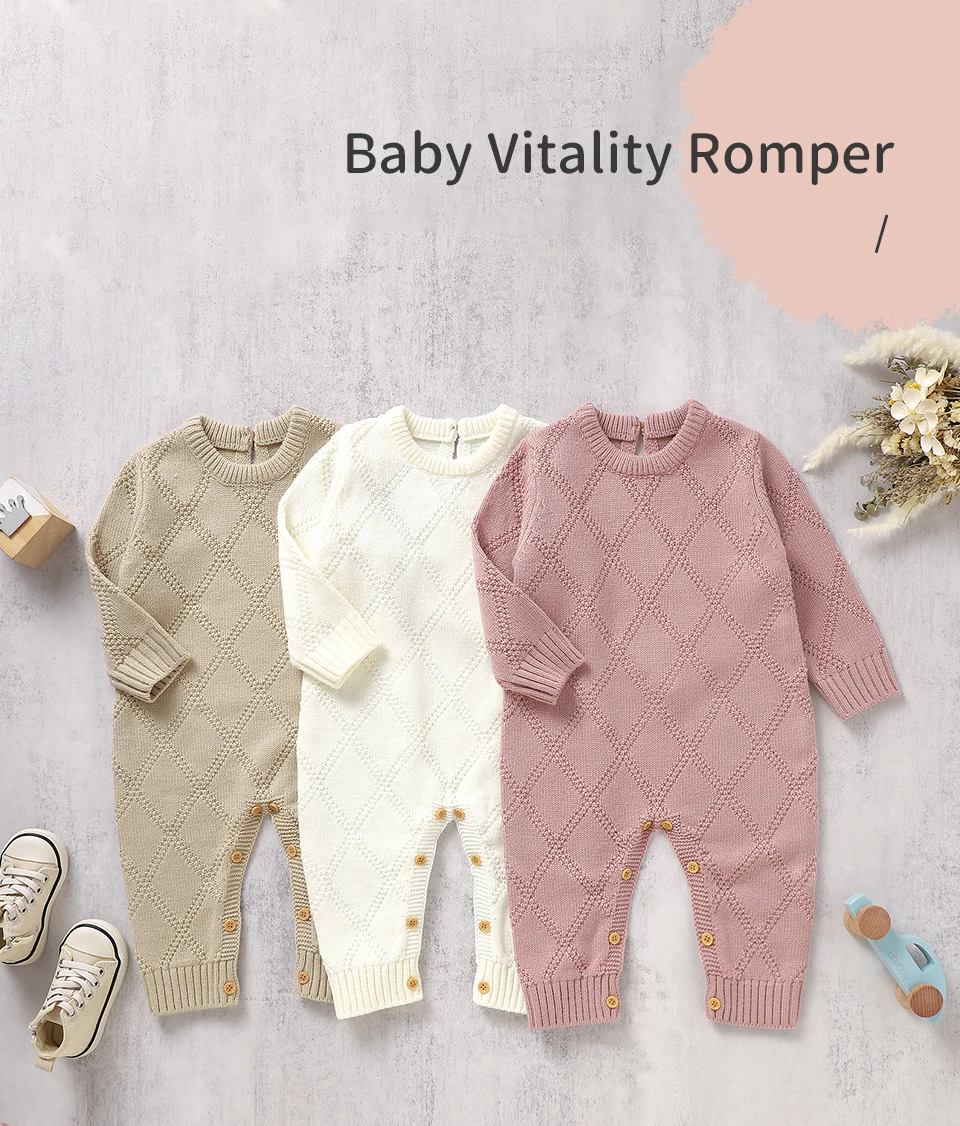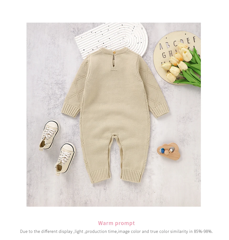 0-18m Baby Rompers Clothes Solid Color Long Sleeves Knitted Newborn Boys Girls Knitted Jumpsuits Infant Toddler Playsuits Outfit