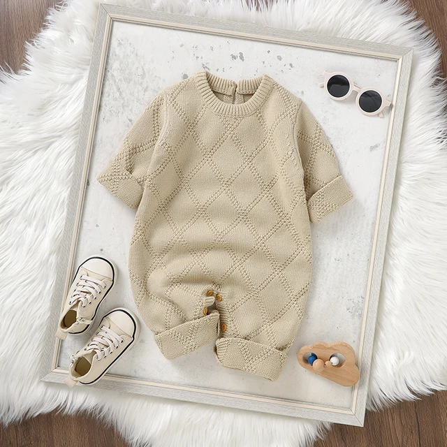 0-18m Baby Rompers Clothes Solid Color Long Sleeves Knitted Newborn Boys Girls Knitted Jumpsuits Infant