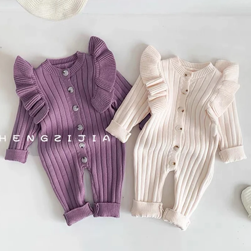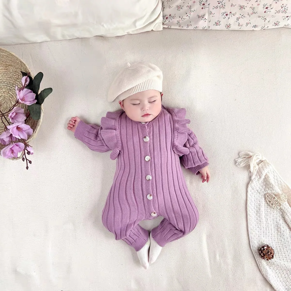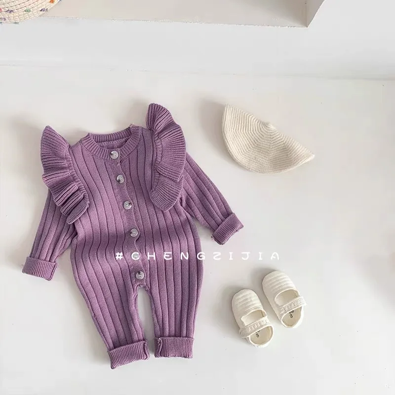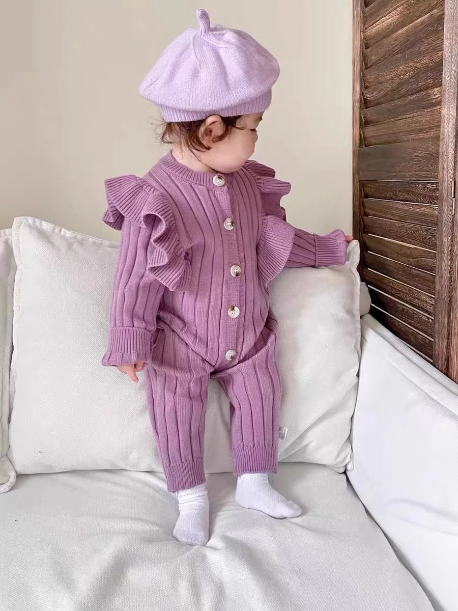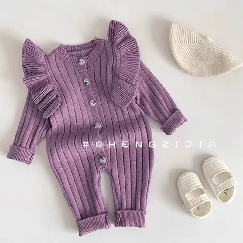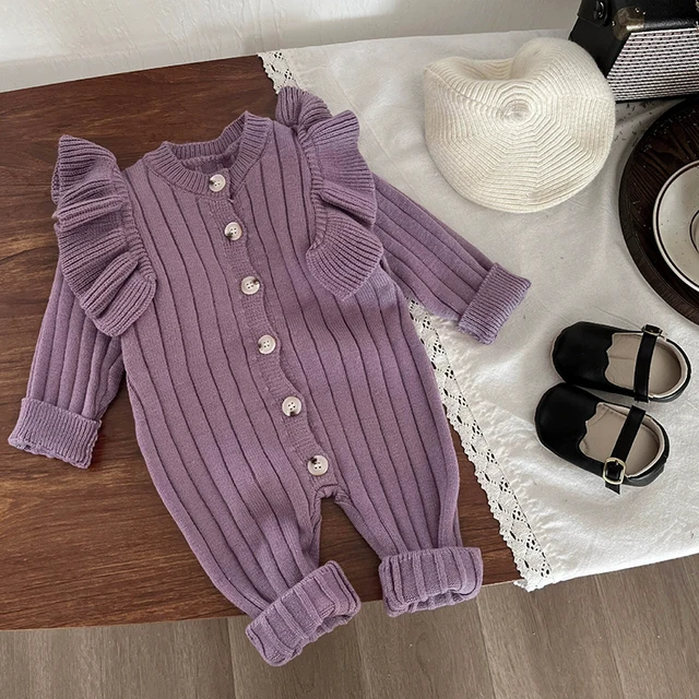 Knitting Jumpsuit Newborn Baby Knitted Purple Ruffled Clothing