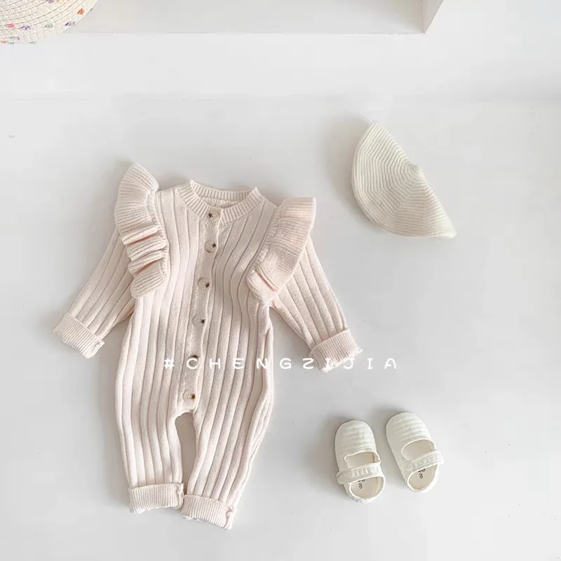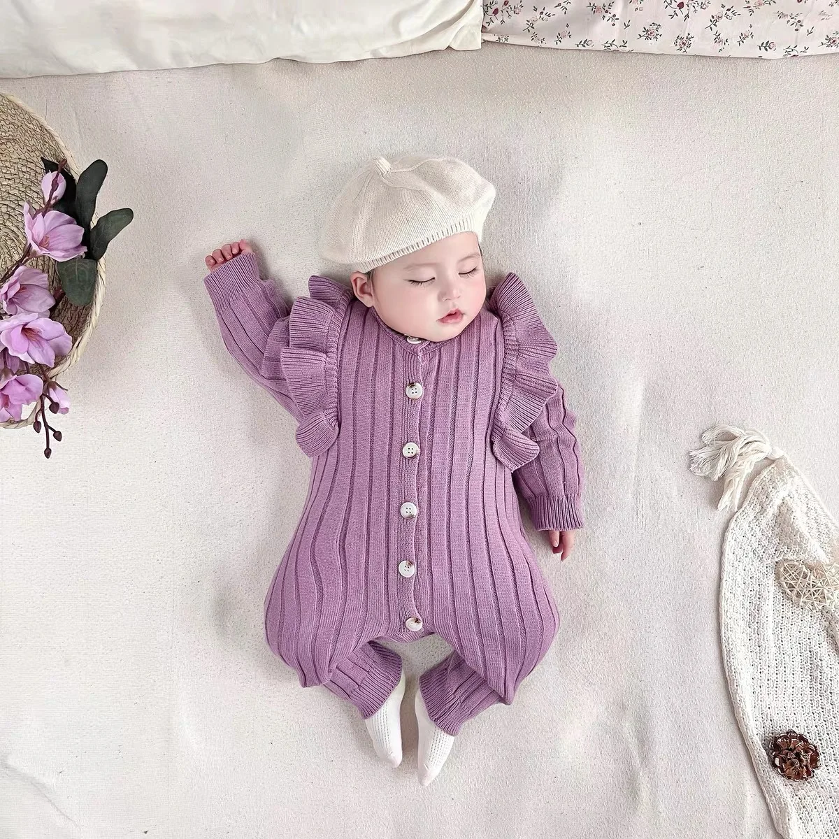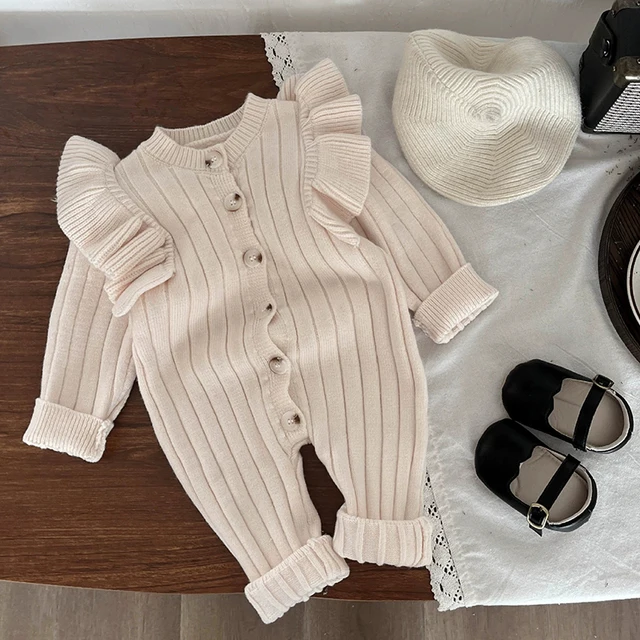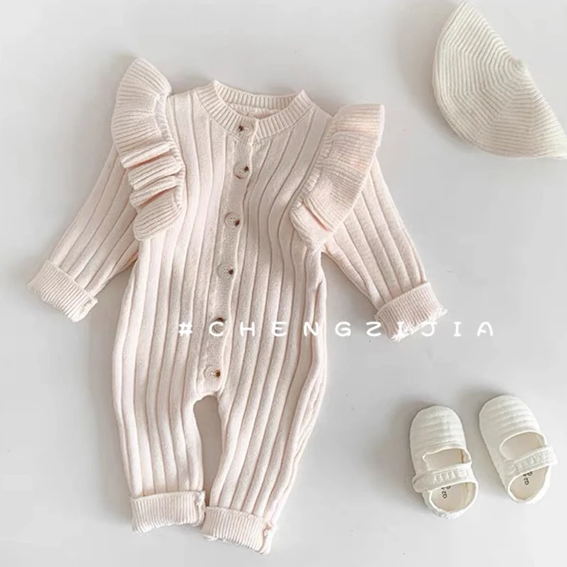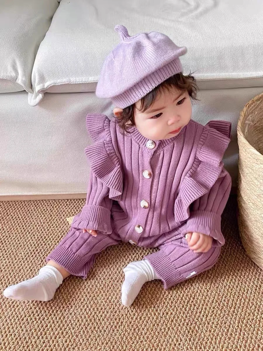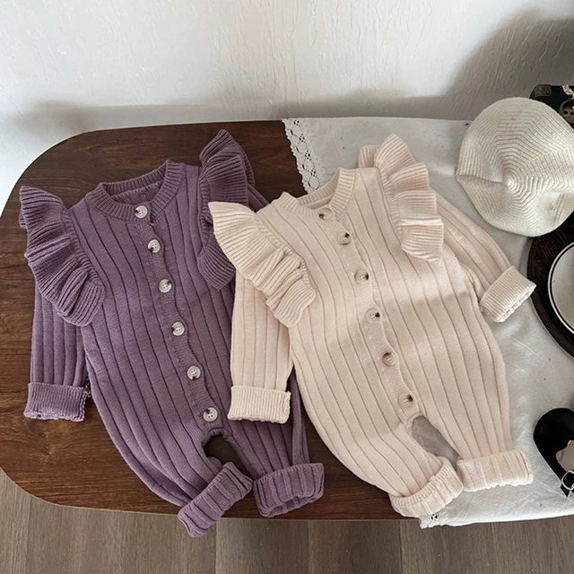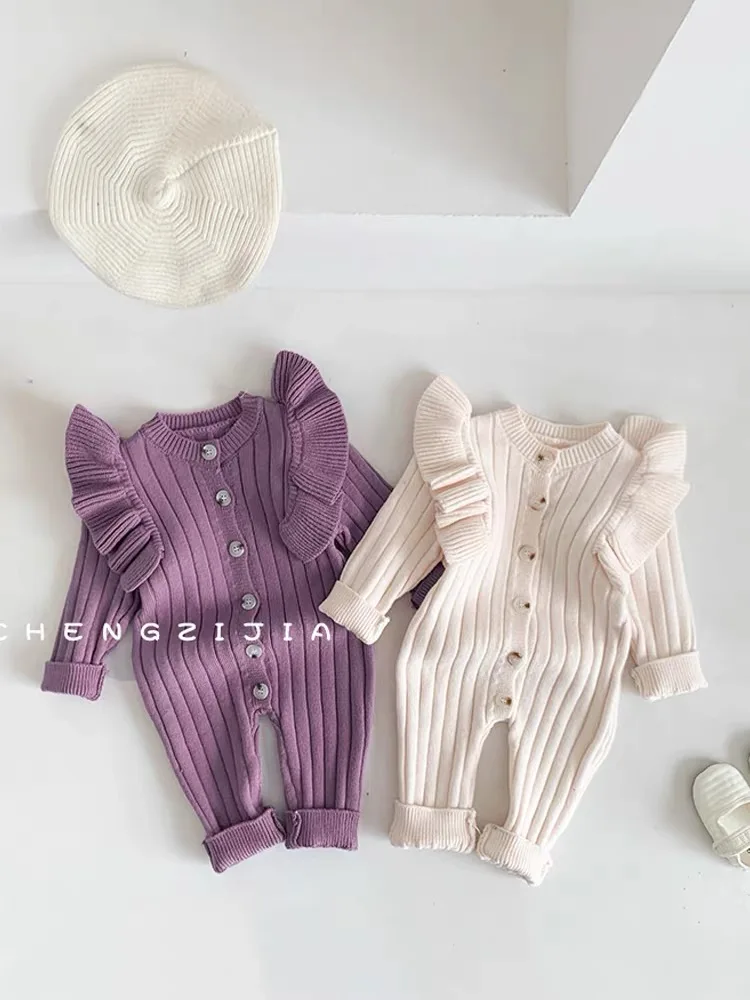 Knitting Jumpsuit Newborn Baby Knitted Purple Ruffled Clothing