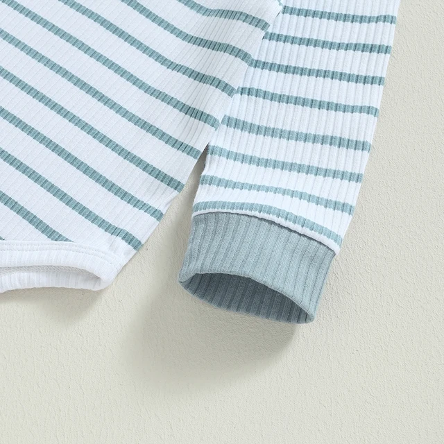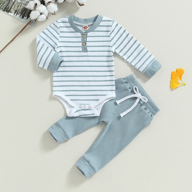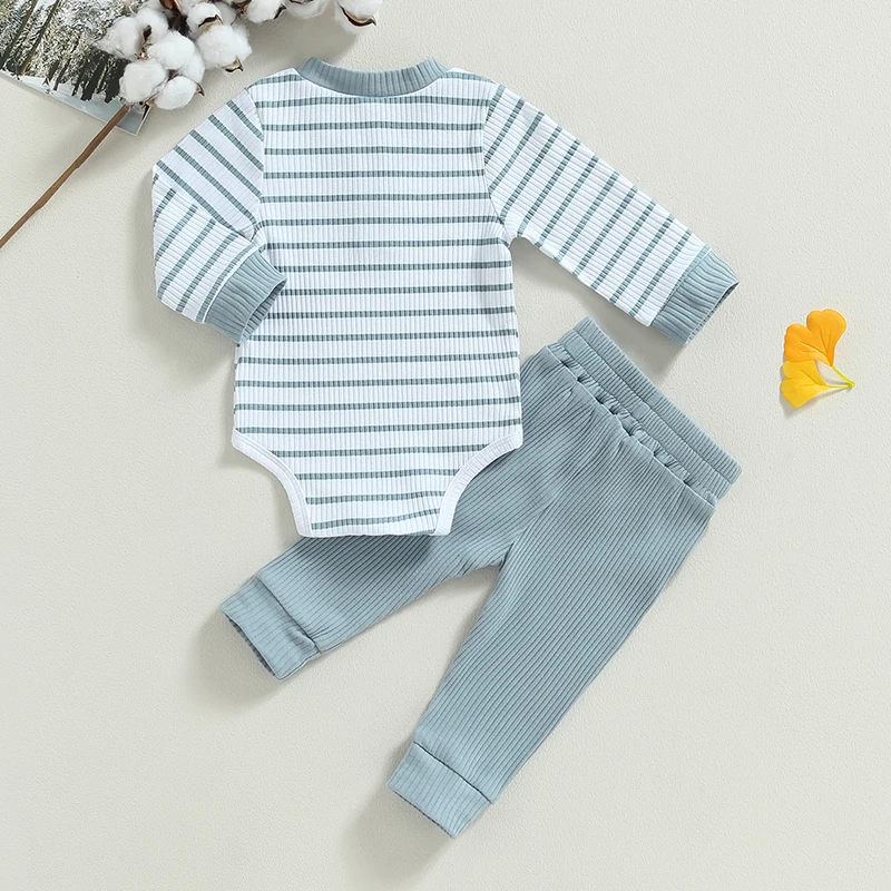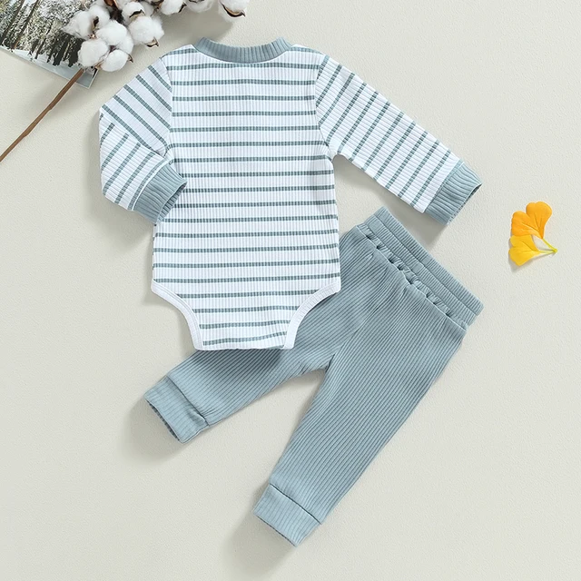Baby Boy 2Pcs Fall Outfits Long Sleeve Striped Print Romper + Pants Set Infant Warm Clothes