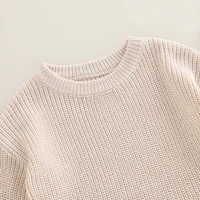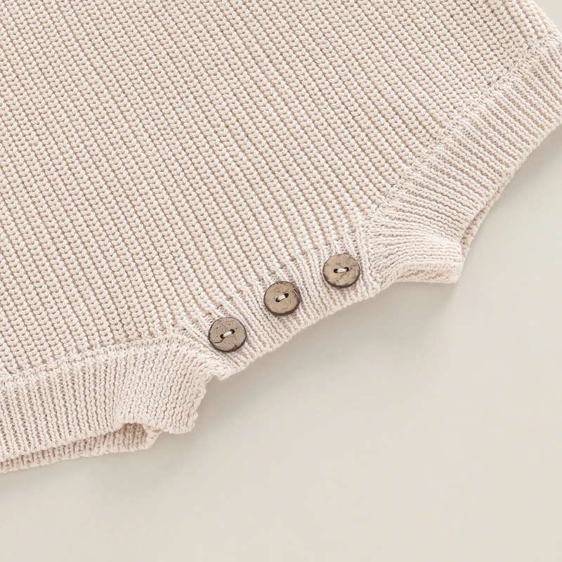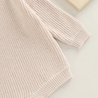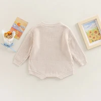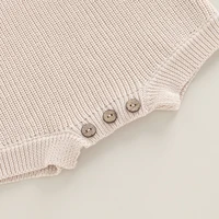 Newborn Baby Romper, Knitting Ribbed Surface Round Neck Long Sleeve Solid Color Crotch Button Bodysuit