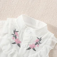 (0-3 Years Old) Summer Baby Girl Cotton Flower Embroidery Sleeveless Top And Shorts Two-Piece Set Of