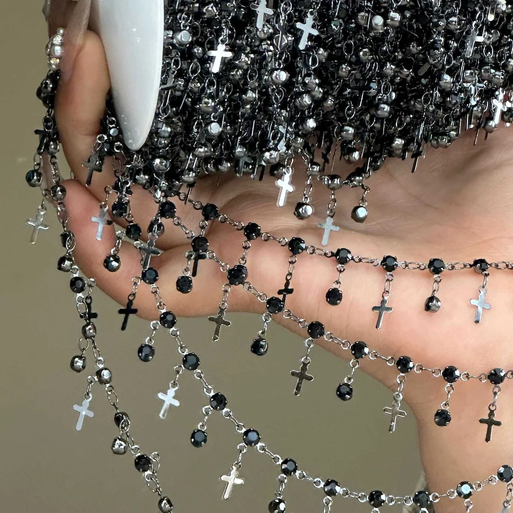 0.5/1 Meter Goth Style Black Cross Skeleton Pendant Chain For DIY Necklace Women Unique Link Aesthetic Halloween Jewelry
