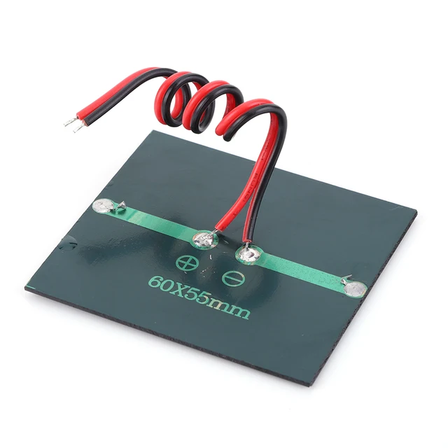 1. Quality with Compact Design: The small solar panel is constructed from high-quality polycrystalline silicon, featuring a laminated process that ensures reliability and durability, capable of withstanding wind and snow. Despite its compact size of 60x55mm, this solar panel is robustly designed for compatibility with numerous applications, offering a blend of portability and long-lasting performance.