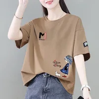 00% Pure Cotton ort Sve T-irt Women's Summer New Faion Loose Sli Age-Defng Versatile Top Korean Sle round Ne