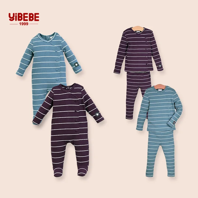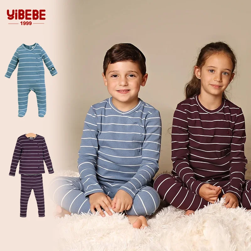 AA-striped pajamas children boy and girls two pieces set and baby footie baby rompers long sleeve autumn/winter cotton clothes