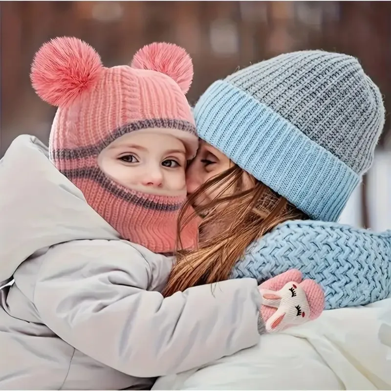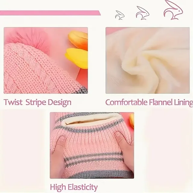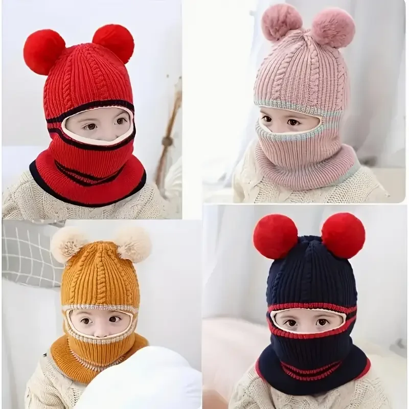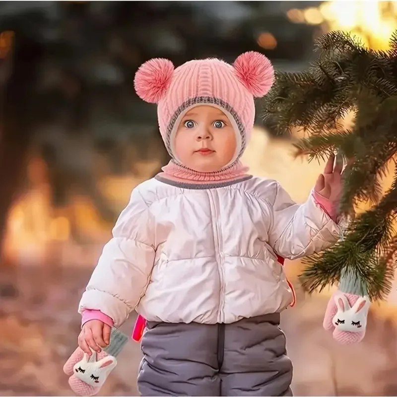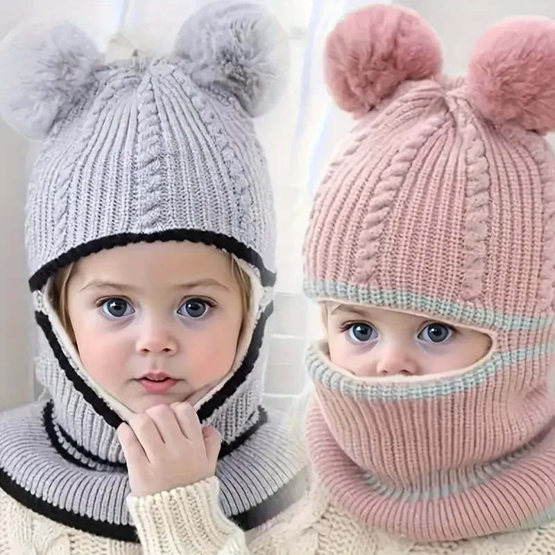1-10PCS Baby Winter Hat Pompom Knitted Hat for Girls and Boys Fleece Lined Warm Hat for Kids Baby Girl