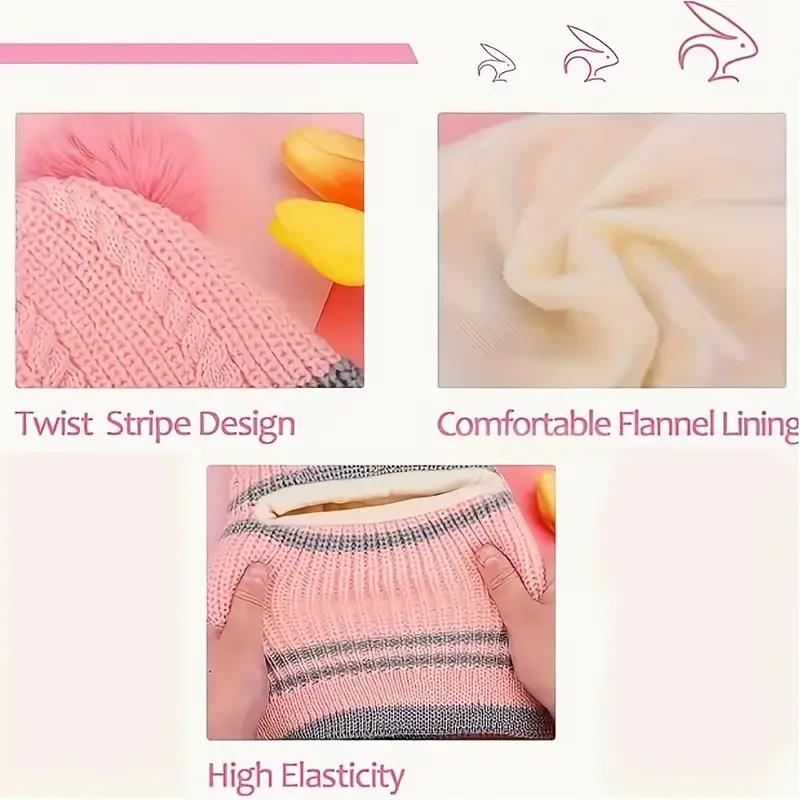 1-10PCS Baby Winter Hat Pompom Knitted Hat for Girls and Boys Fleece Lined Warm Hat for Kids Baby Girl Boy Winter Headwear
