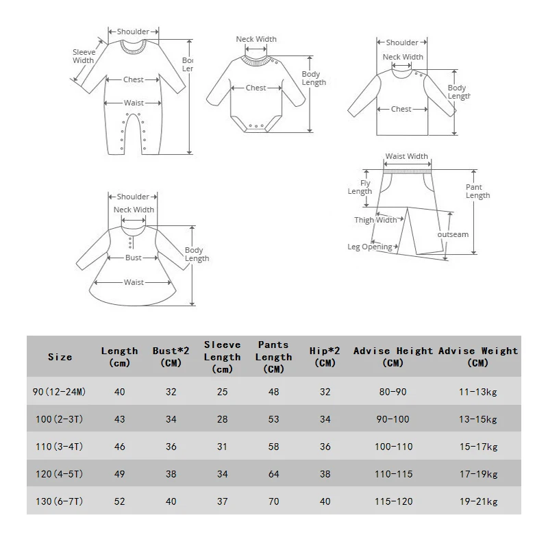 140 Tops Length:50cm bust:41*2cm Sleeve:39cm Pants:77cm Age:8-9T