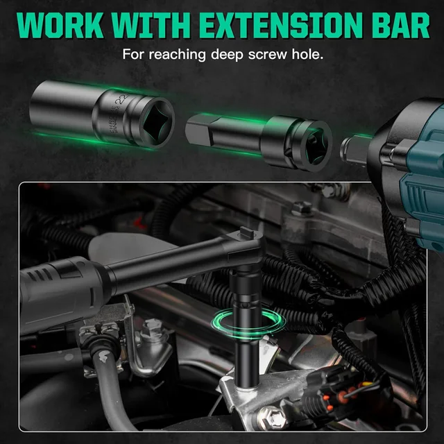 Concave 6-point hex socket grips the fasteners stably, prevents falling off under high torque and hammering stress when used with impact wrenches against fasteners.