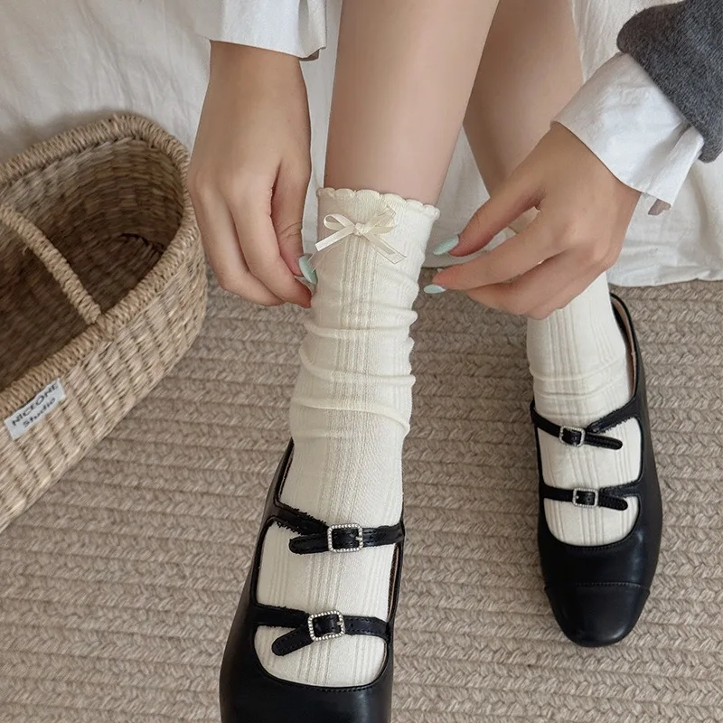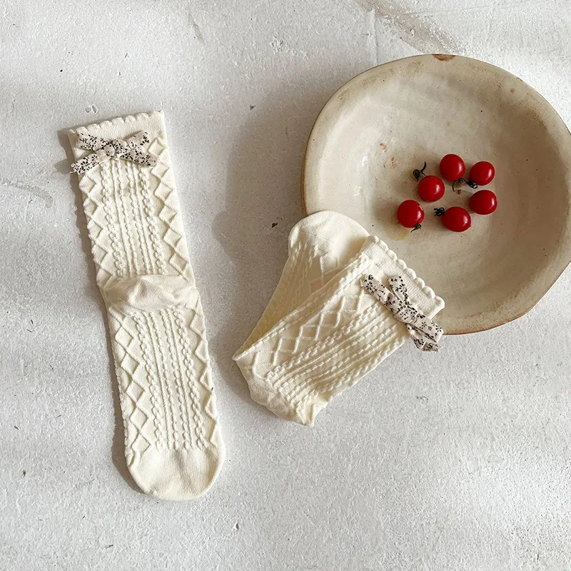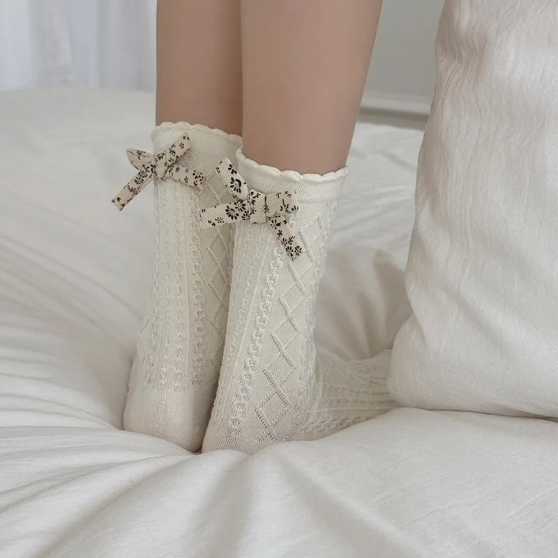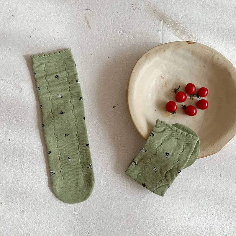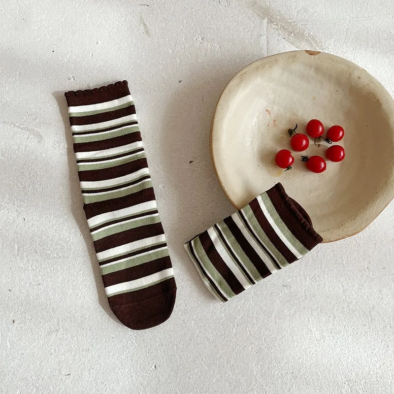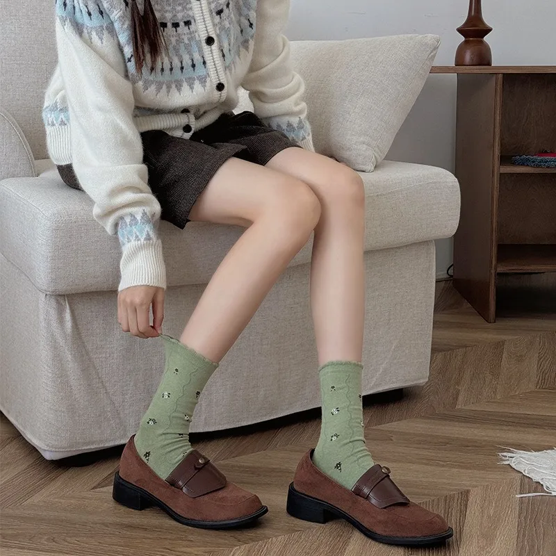 1 3 5 Pairs Womens Seamless Slouch Socks Retro Japanese Style Cotton Crew Socks Brown Little Flower Stripe