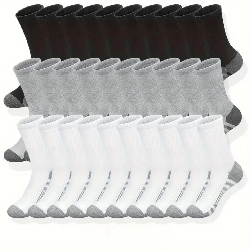 Harajuku Men Sock Autumn Winter Simple Casual Round Neck Socks Black White Grey Solid Color Socks High-quality Mid Tube Socking