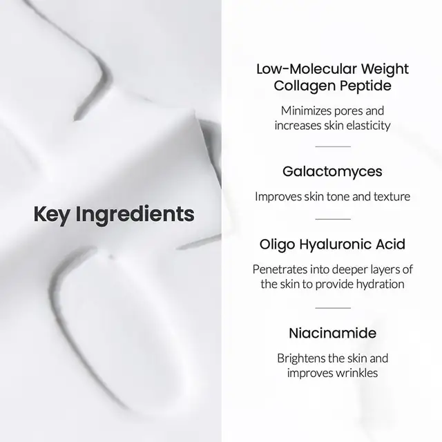 1. Highly effective hydration and moisturizing: Contains rich collagen ingredients, effectively hydrates and moisturizes, making the skin immediately supple and moving.