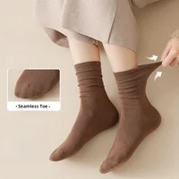1/5 Pairs Cotton Socks Women Seamless Soft Crew Socks Medium Tube Long Loose Casual Solid Color Anti-Pilling