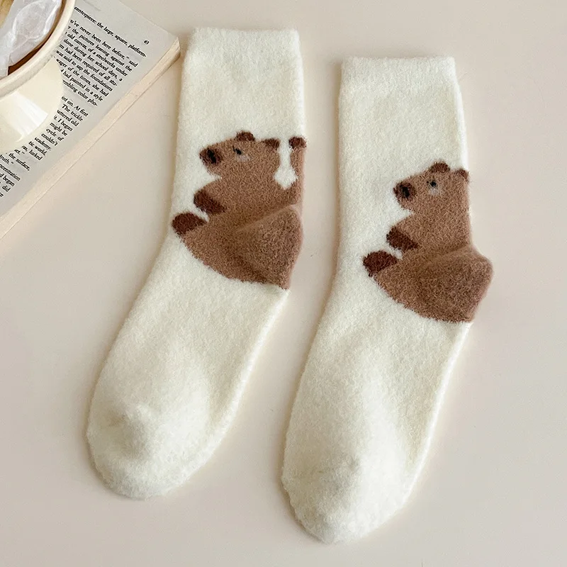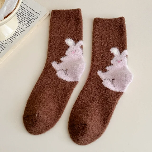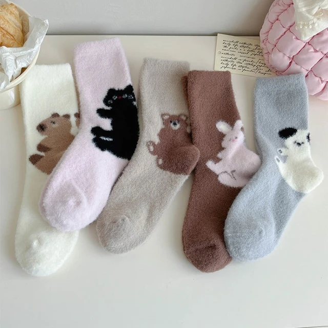 1/5 pairs of breathable warm sweat absorbing women’s mid length socks thickened cute simple casual