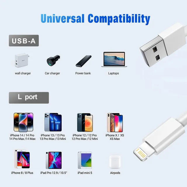 1-5Pcs USB A to L Charging Cable For Apple iPhone 14 11 13 12 Pro Max Plus XS XR Phone USB Data Wire
