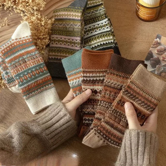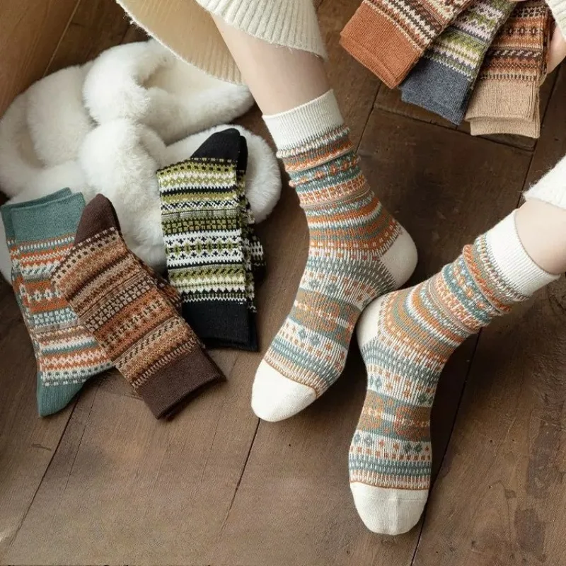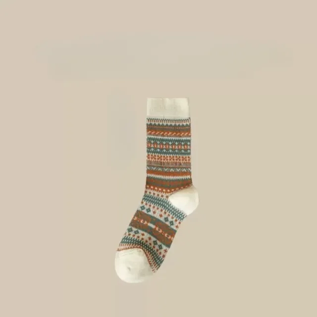 1/7 pairs of women’s ethnic style breathable sweat absorbing mid tube socks for autumn winter simple