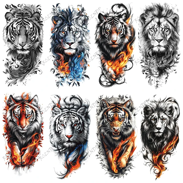 1/8PCSWaterproof Temporary Tattoo Sticker tiger lion Fake Tatto Flash Tatoo Arm tatouage for Girl Woman