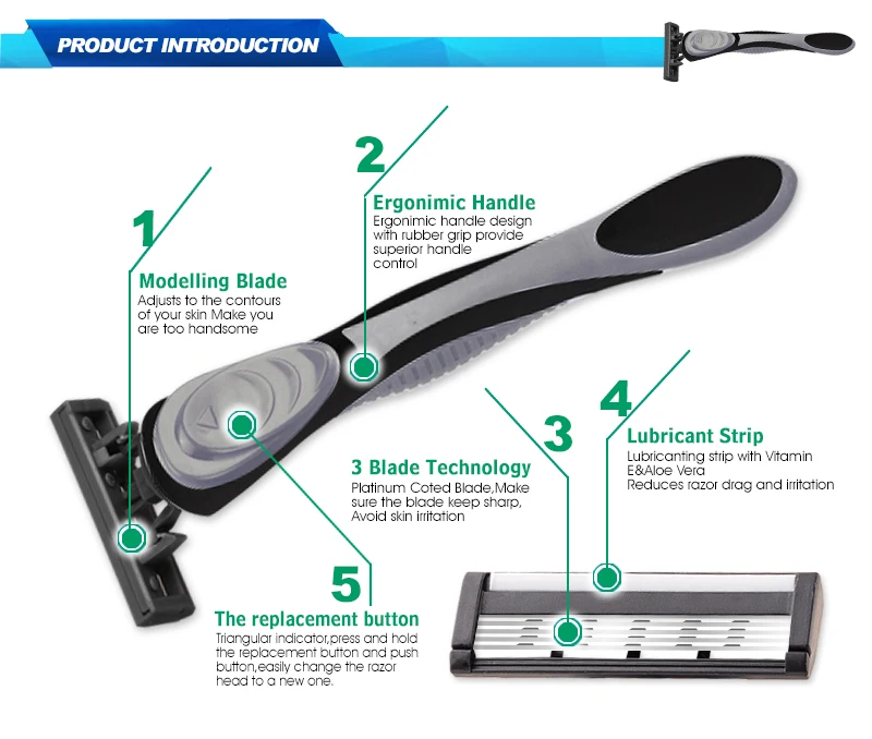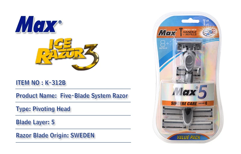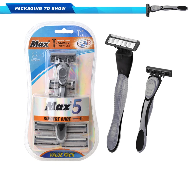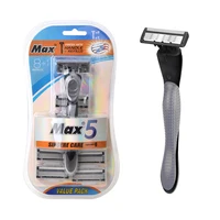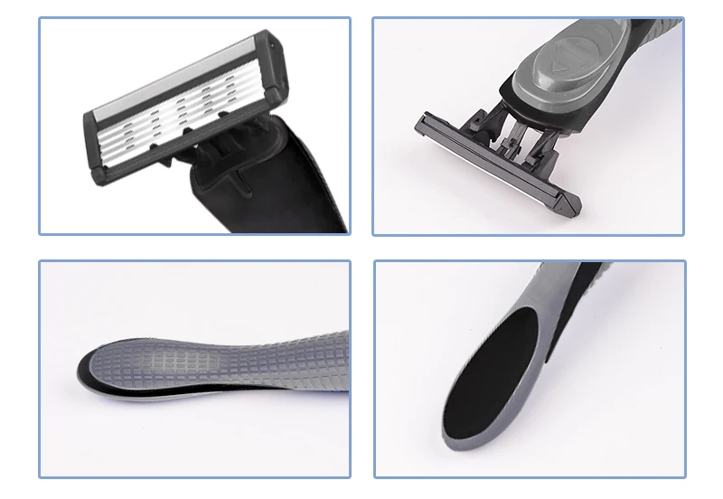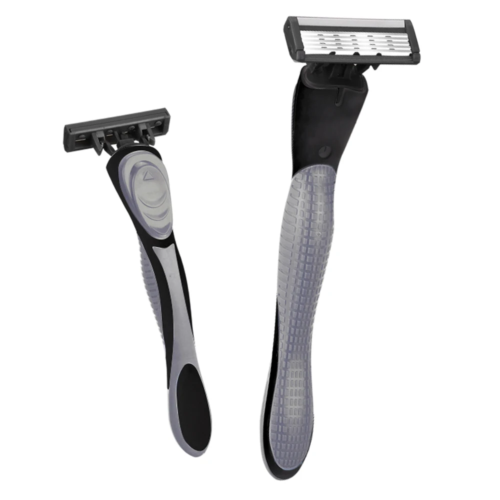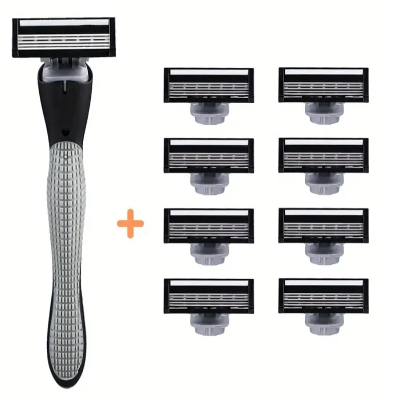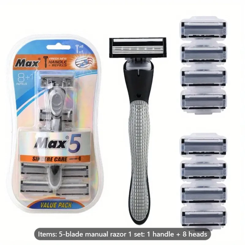 Men's 5-Blade Manual Safety Razor Features 6 layers of stainless steel blades With ergonomic metal handle Includes 4-24 Heads