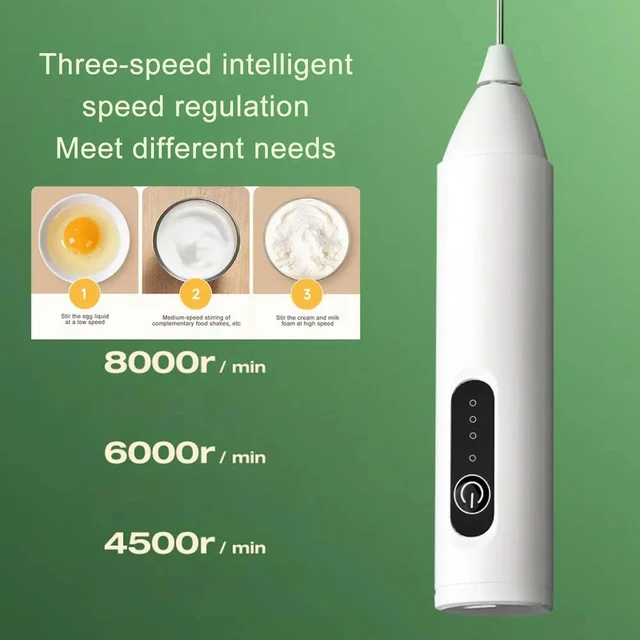 1 milk frother, egg beater, mini handheld rechargeable 3-speed beverage coffee machine, portable home