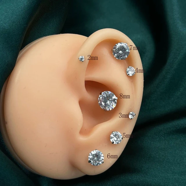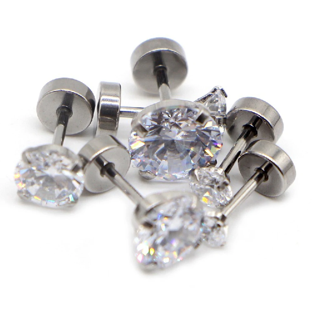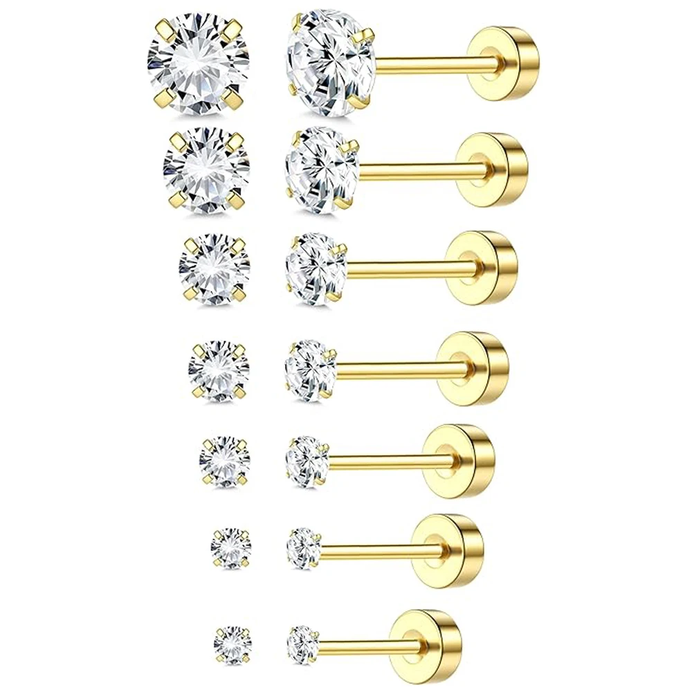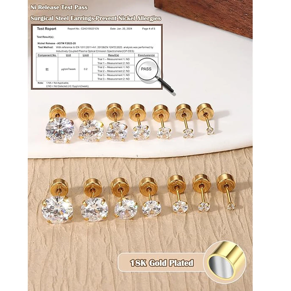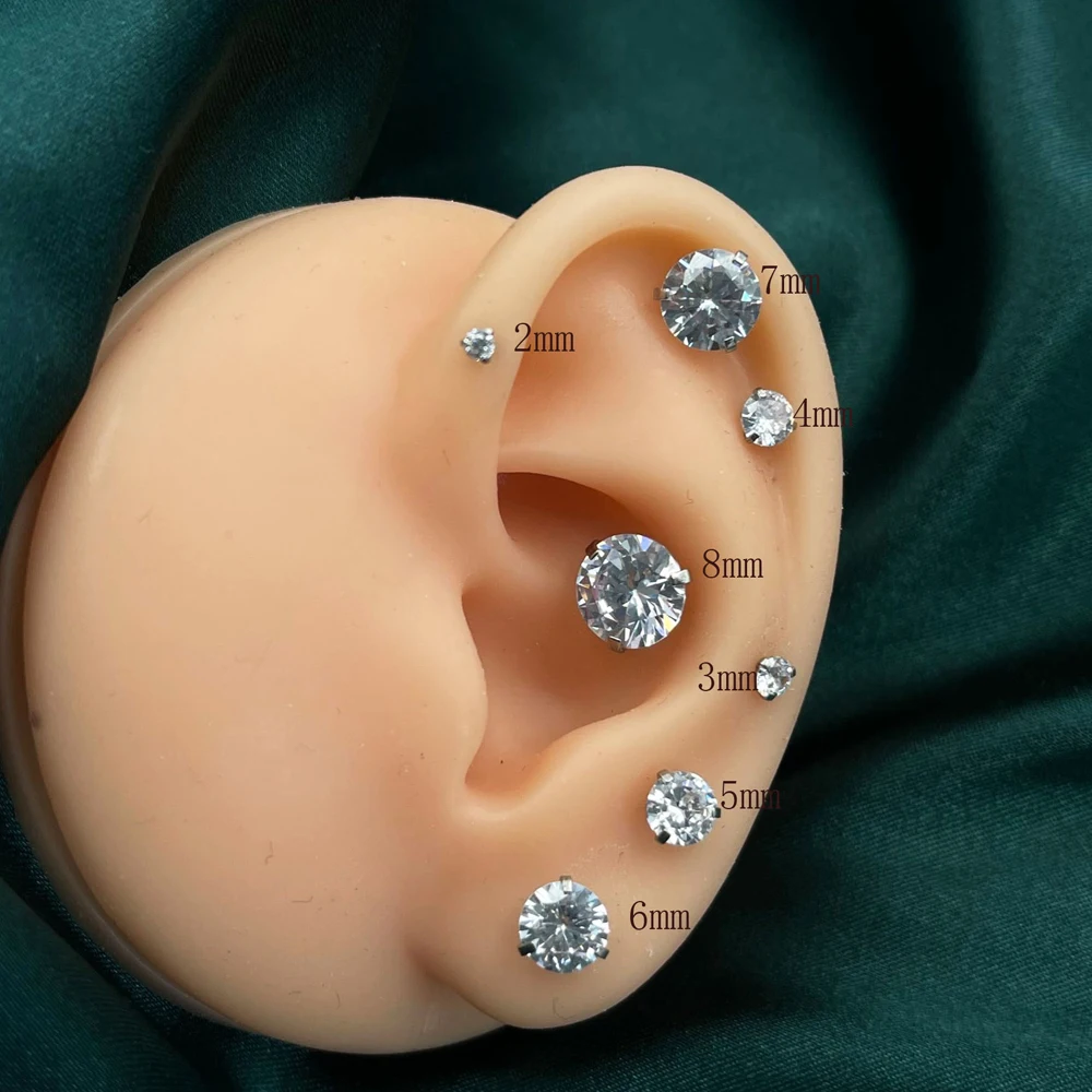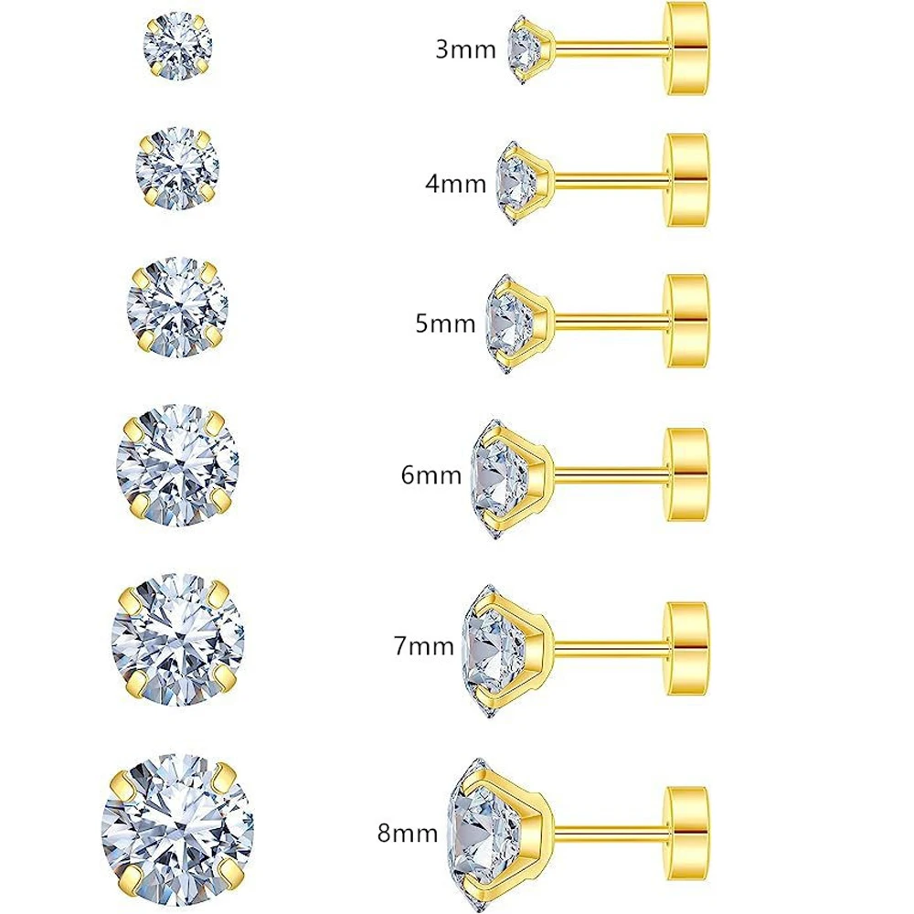 4.❤Long-lasting Shine❤Surgical steel threadless flat back earrings set with 3-8mm round AAAAA+ cubic zirconia(5A CZ), extremely delicate & shinier, high luster & clear facets, long lasting shine.The 4-prong inlay strongly protects CZ and prevents it from falling out