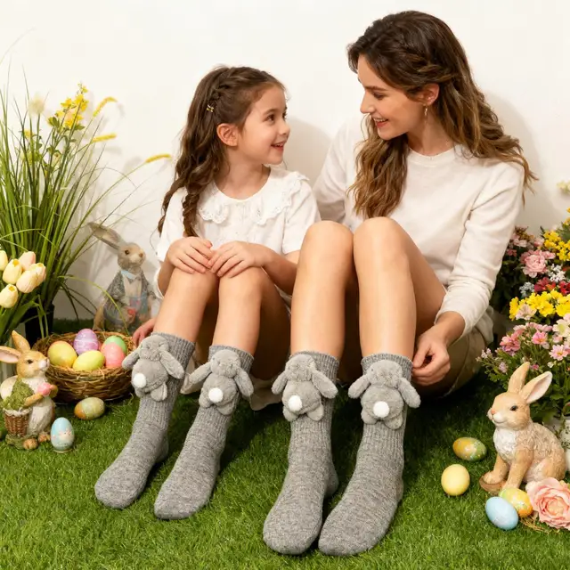 1.Playful Holiday Socks: Featuring a realistic bunny decor, these 3D animal socks leverage detailed 3D knitting methods to deliver captivating dimensional patterns, suitable for holiday sharing events or casual wear, providing both visual delight and comfortable functionality in every step you take