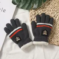 1 Pair Kids Winter Gloves Full Finger Knitted Gloves Warm Mittens Double-layer Gloves for Boys Girls