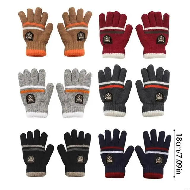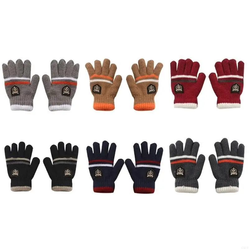 1 Pair Kids Winter Gloves Full Finger Knitted Gloves Warm Mittens Double-layer Gloves for Boys Girls Supplies 6 Colors-