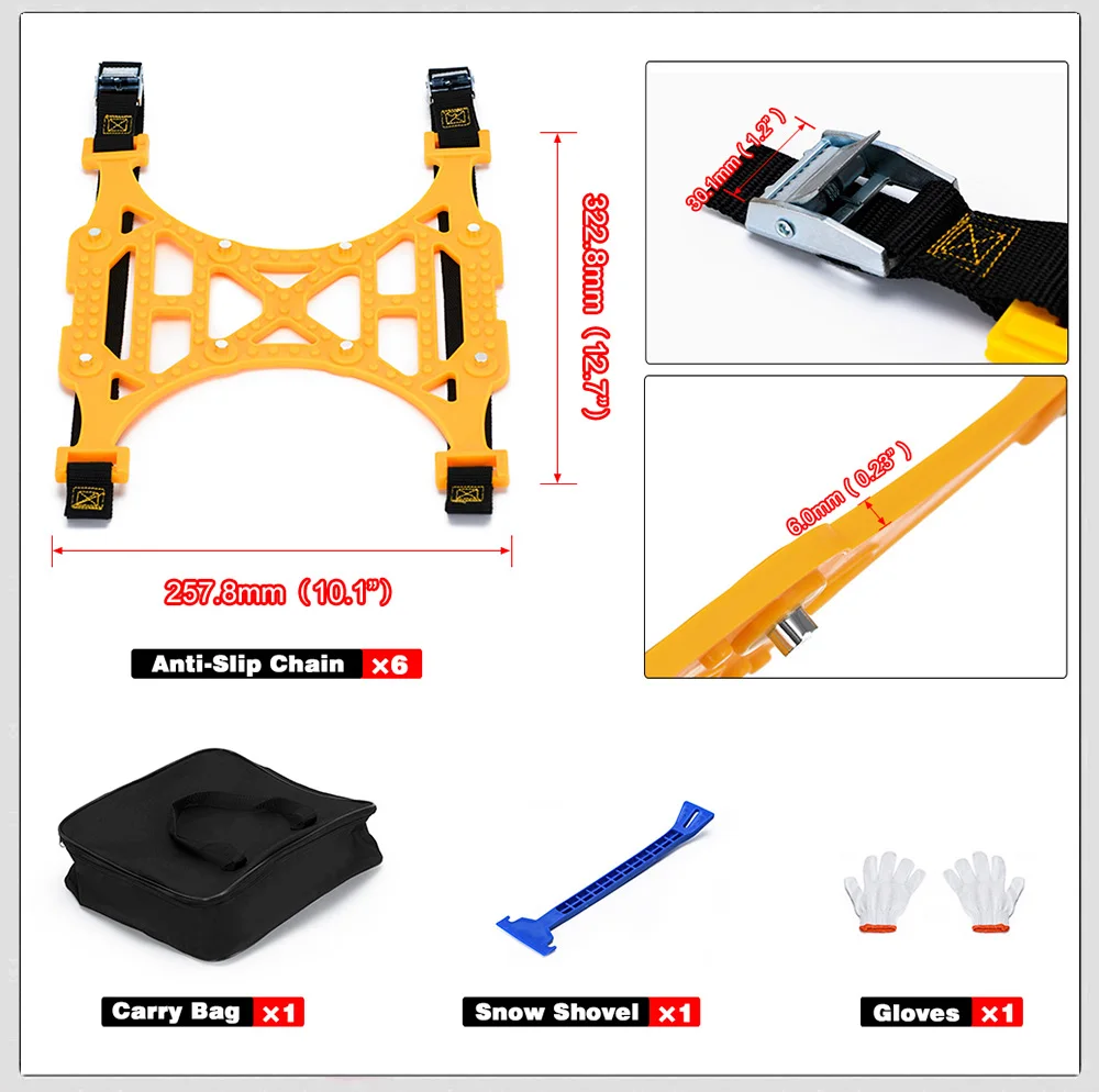 1 Pieces 165-265mm Car Snow Chains TPU Wheel Security Chains Adjustable Snow Tire Chains Belt Emergency Anti-Skid Anti-Slip