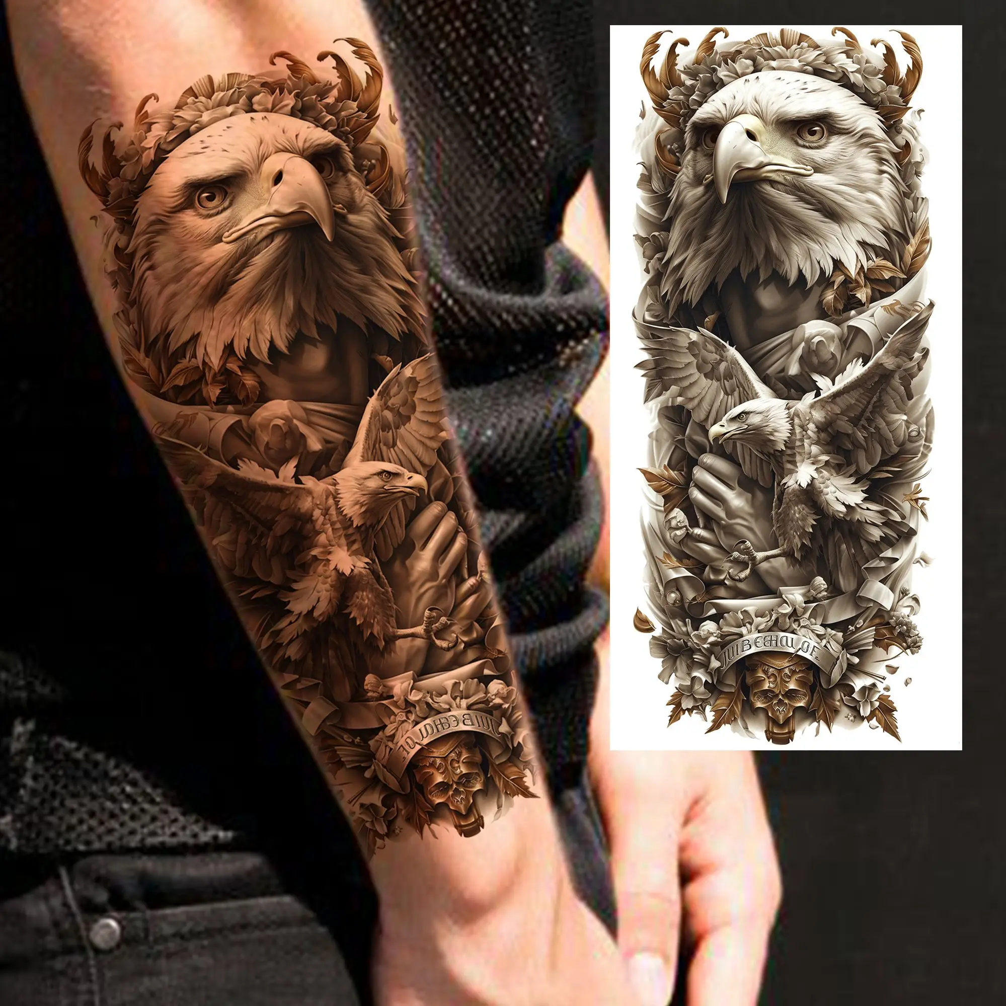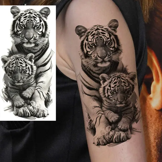 1 Sheet Lion Tiger Family Temporary Tattoos For Men Women Owl Eagle Tatoos Waterproof Realistic Fake Tattoo Sticker Long Lasting