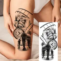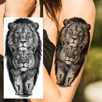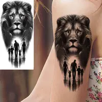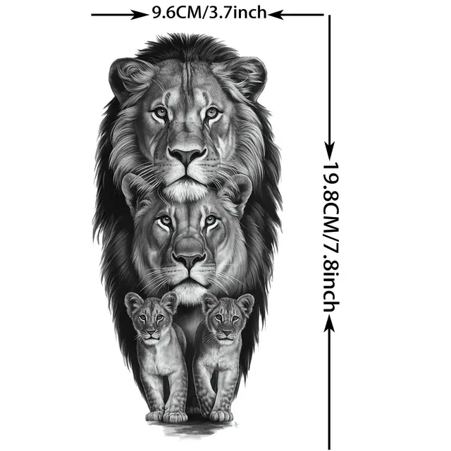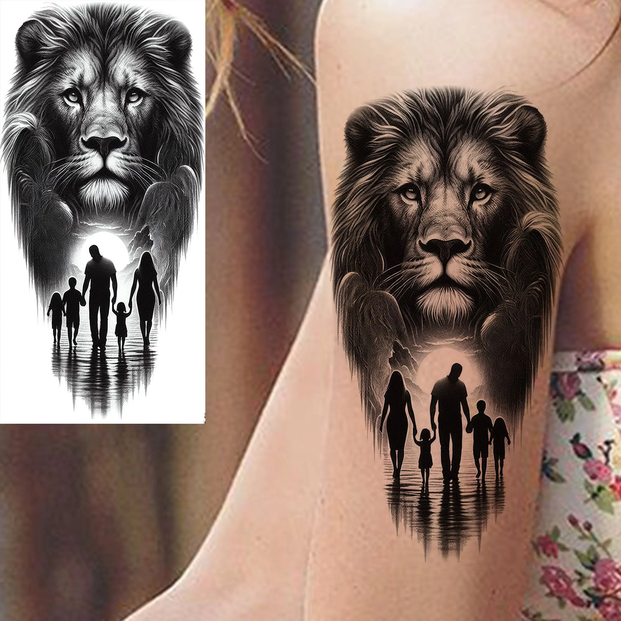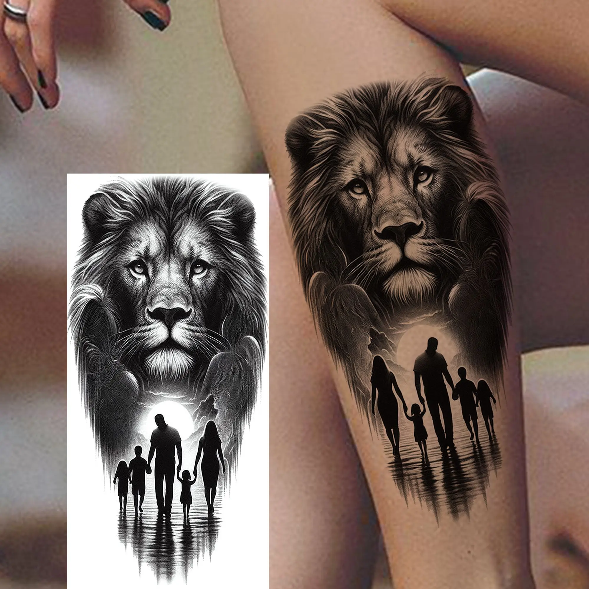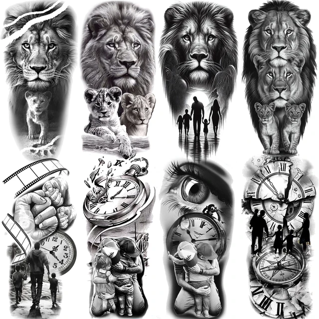 1 Sheet Waterproof Lion Family Clock Temporary Tattoos For Men Women Realistic Fake Tattoos Long Lasting Arm Leg Tatoo Sticker