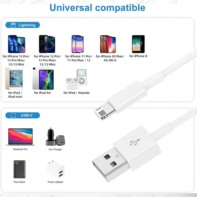 【Apple MFi Cerfitied Charger】 Our charger cable for iPhone 14/ 14ProMax/ 14Pro/ 14Plus/ 13/ 13ProMax/ 13Pro/ 13Mini/ 12/ 12ProMax/ 12Pro/ 12Mini/ 11/11Pro/11ProMax/ XS Max/XS/XR/X/8 Plus/8/7 Plus/7/6 Plus/6/6S Plus/6S /5 and iPad 8th/iPad 2020/iPad Pro 12.9″ gen1/iPad Pro 12.9″ gen2/iPad Pro 10.5″/iPad Air3 10.5″/iPad mini5 7.9″ and more.