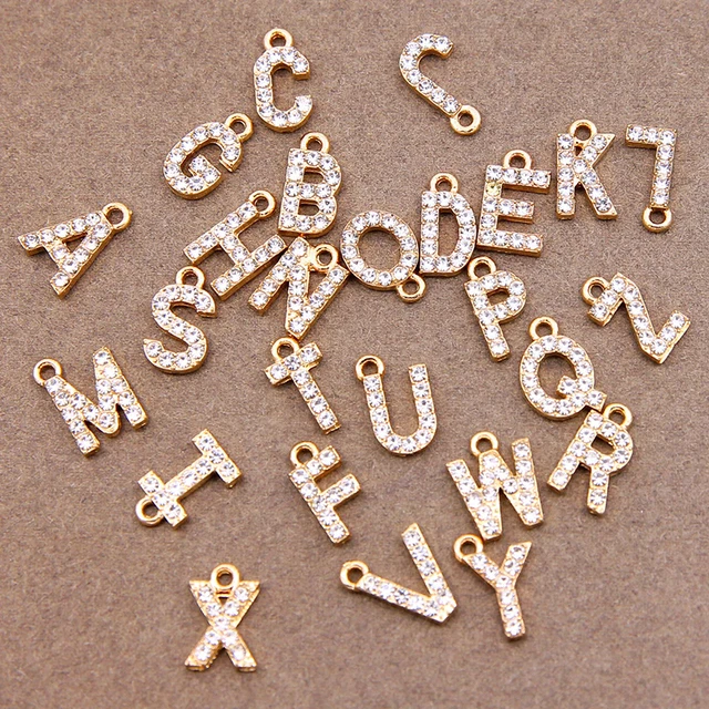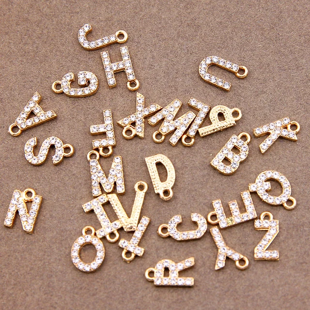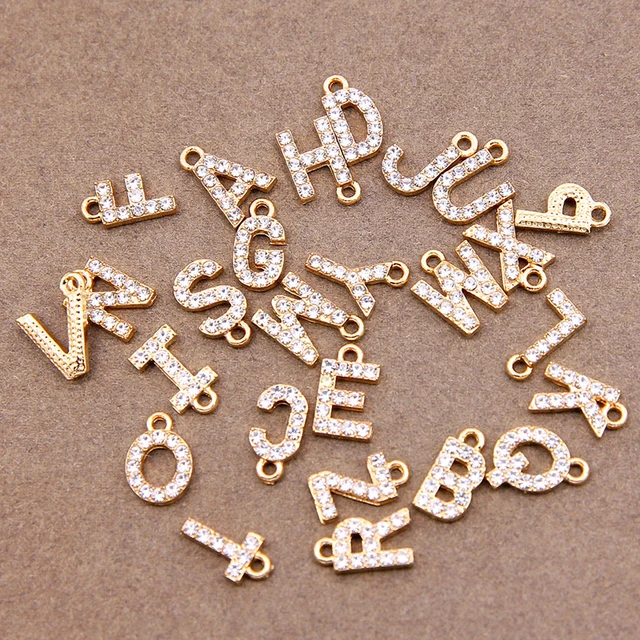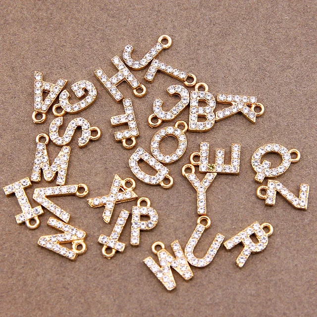 10/26pcs 12*7mm Alloy inlaid rhinestones 26 Letter Charms Pendants for Women Necklace Earring DIY jewelry