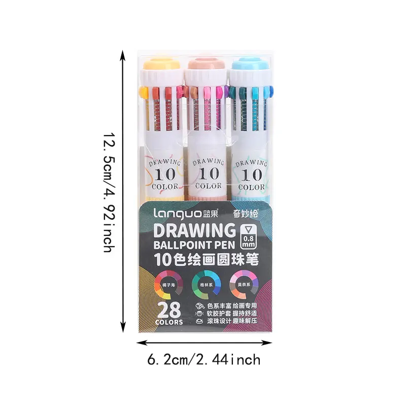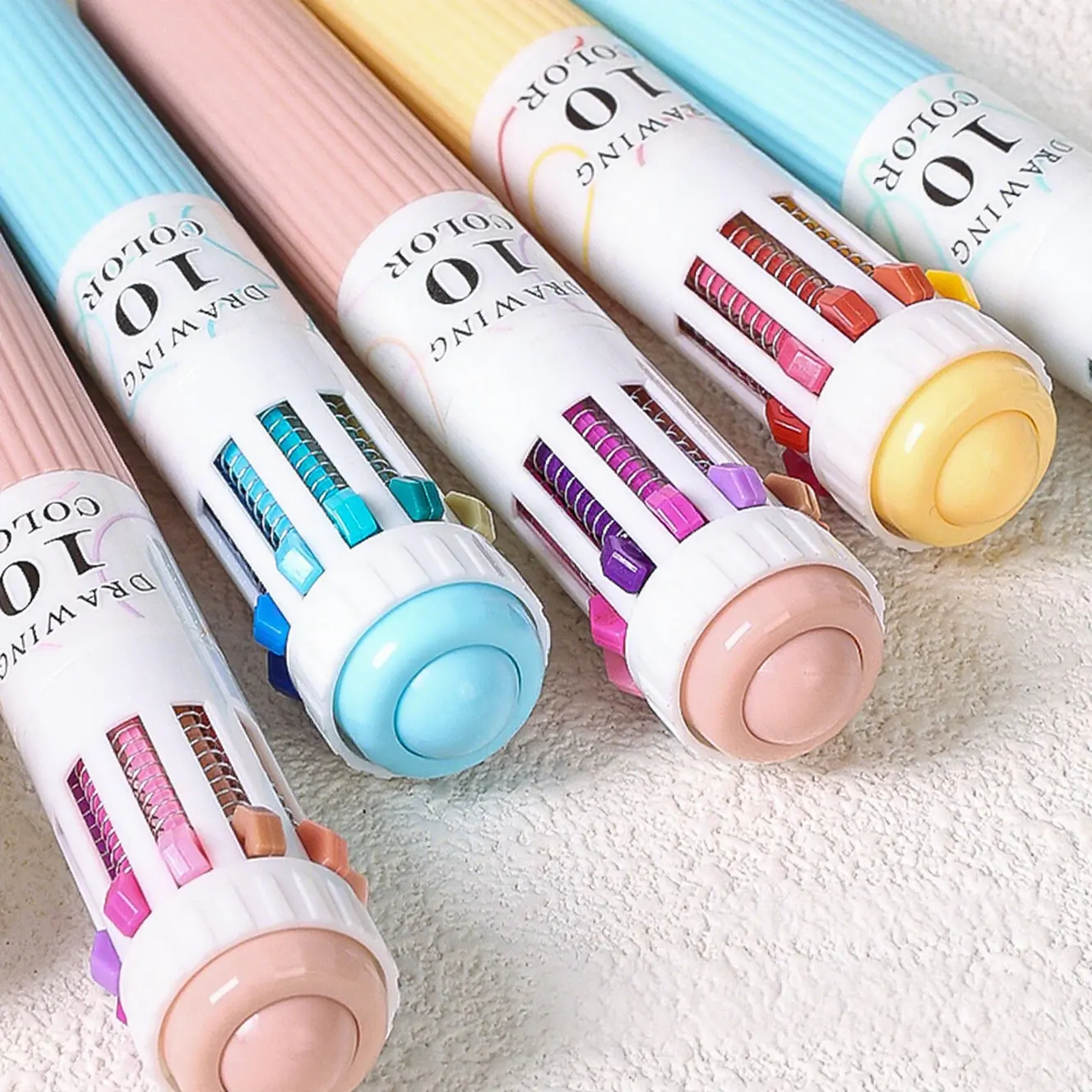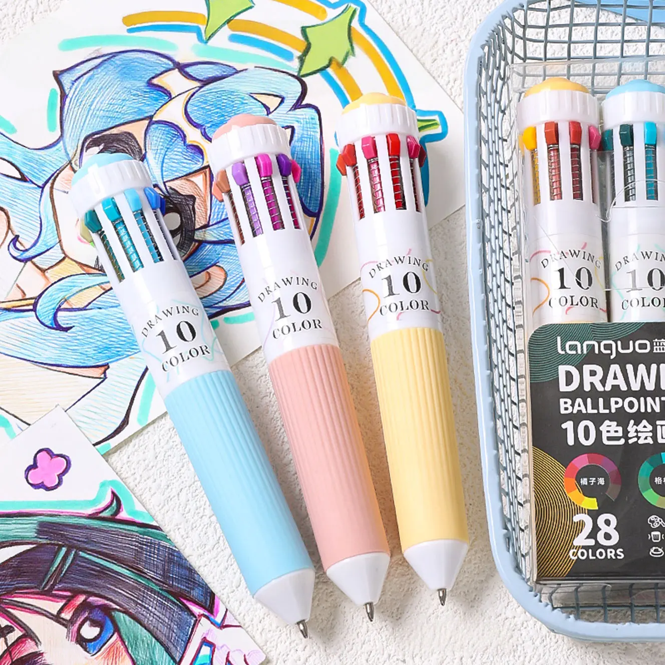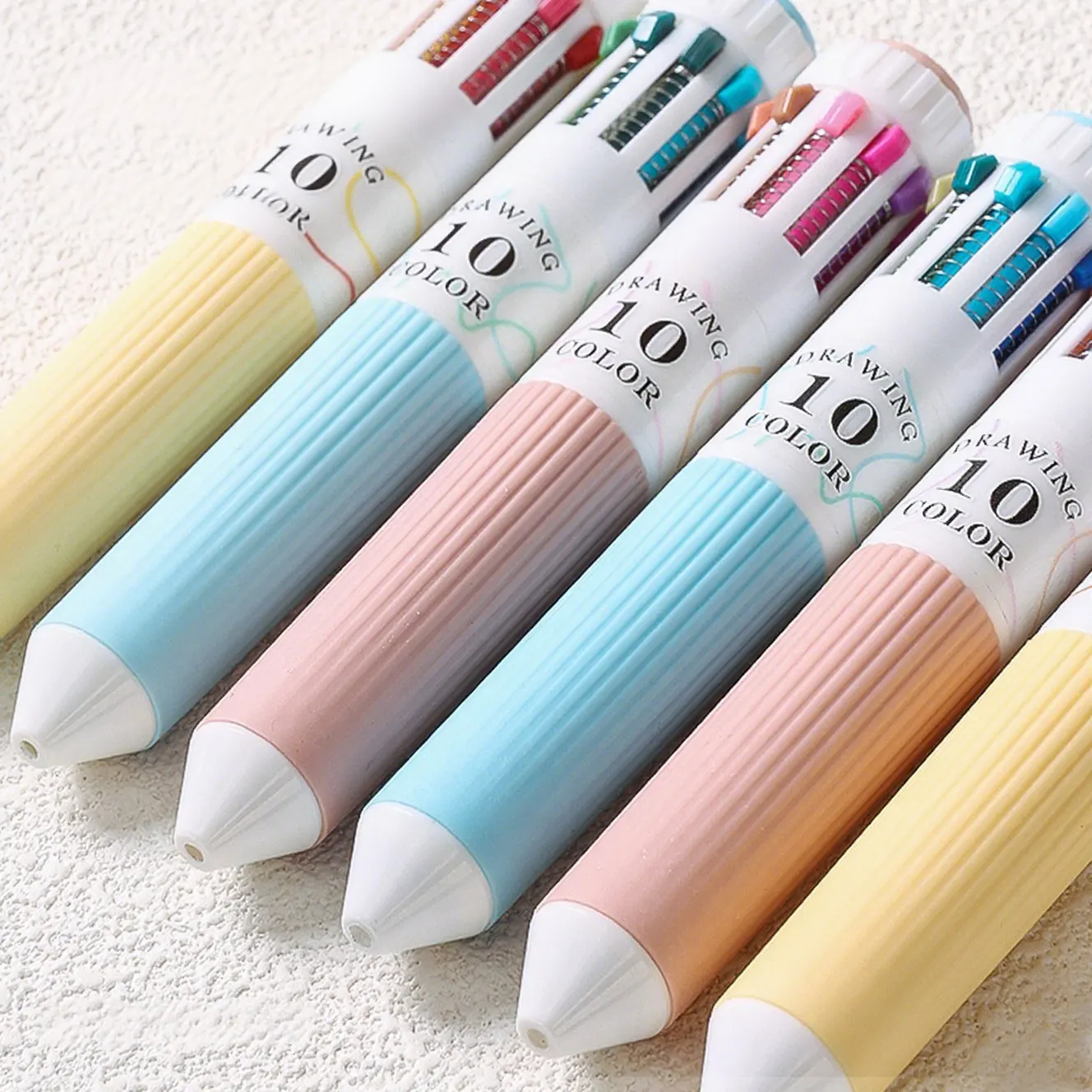 10-Color Ballpoint Pen Set Kawaii 0.8mm Gel Pens for School Office Stationery Drawing Writing Soft Grip Multicolor Pen Supplies