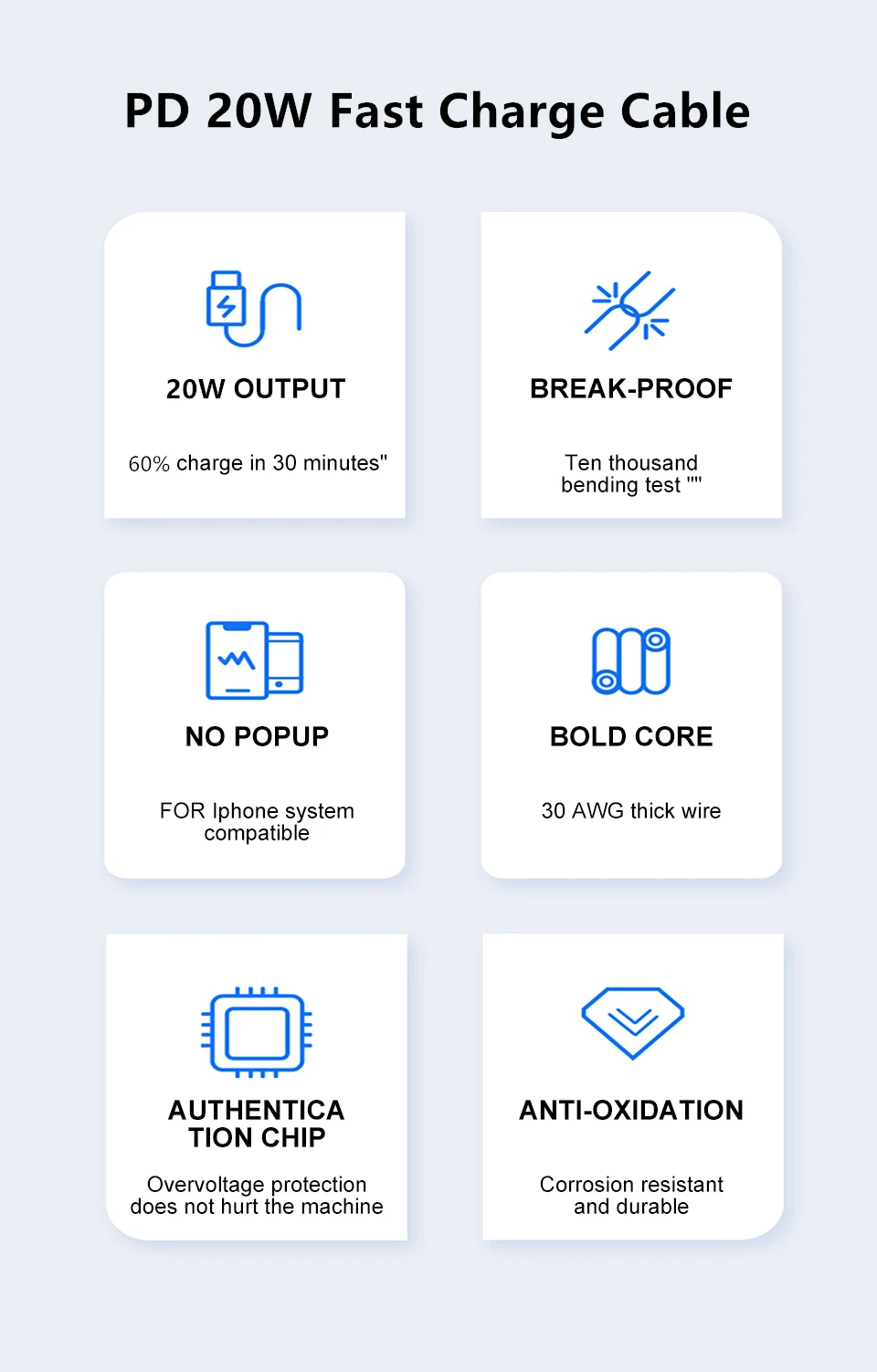 10 PCS 20W PD Fast Charger Cable for iPhone 11 12 13 mini 14 Pro XS Max XR X 8 Plus SE Rapid Charging