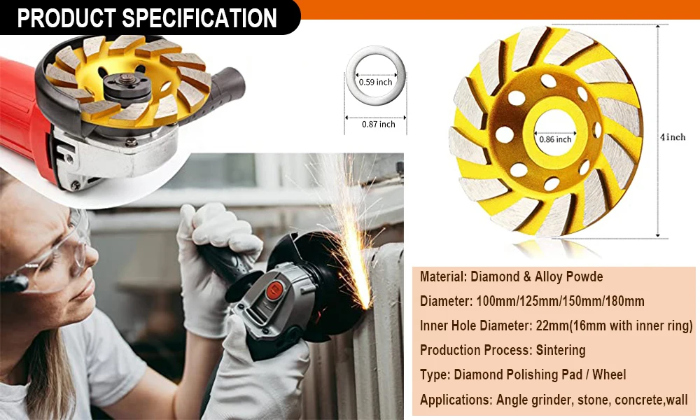 ★ WIDE APPLICATIONS: Suitable for dry or wet grinding of concrete, granite, stone, marble, tile, masonry and some other construction material to smooth uneven surfaces and remove flashing.