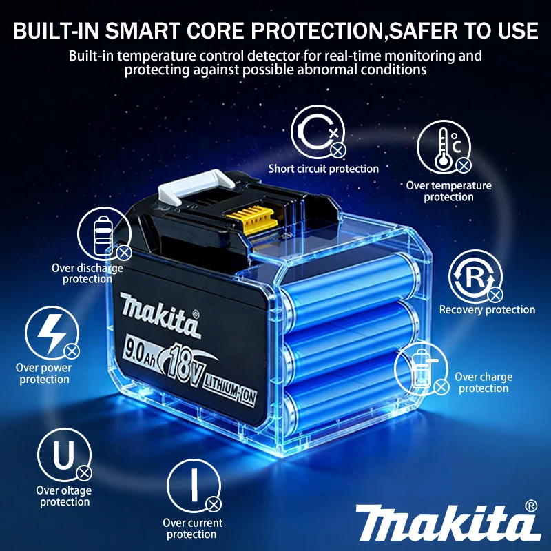 Warm Tips: After use, it is recommended to cool down the battery and then recharge it. Always keep the battery out of the device if you are not using it for a long time. Place it in a dry and clean environment away from heat sources and metal objects. Please do not use original for Makita chargers over 7A for charging. When charging the battery, someone must be nearby to ensure safety.