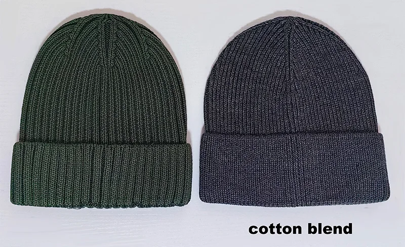 Cotton blending hat: 55% acrylic, 45% cotton.