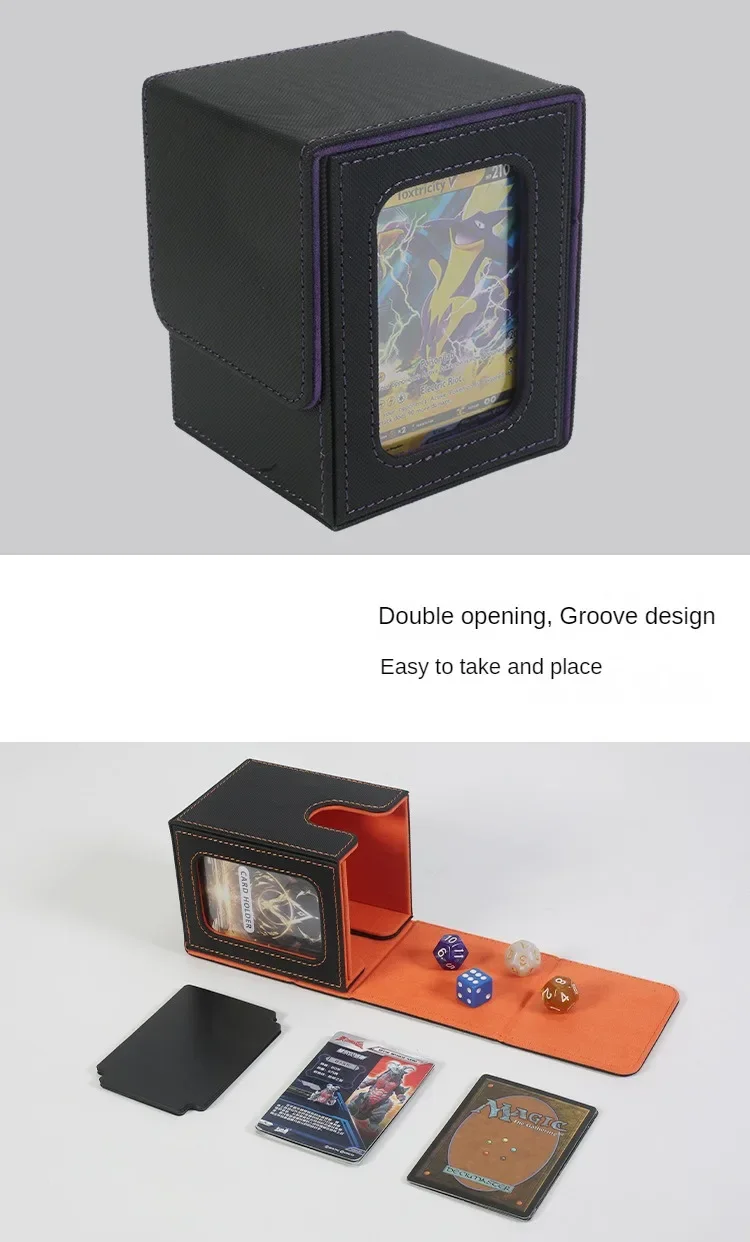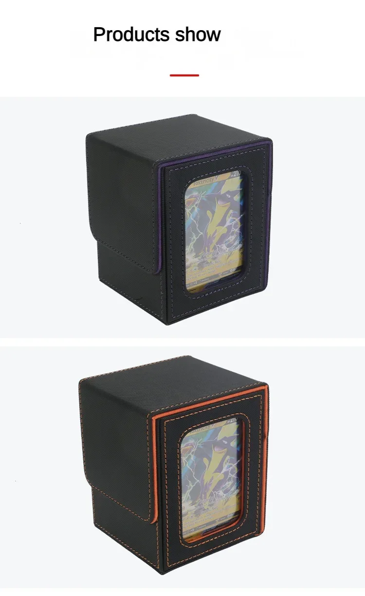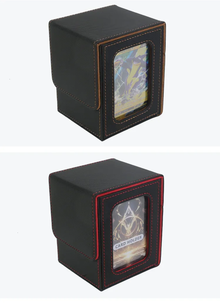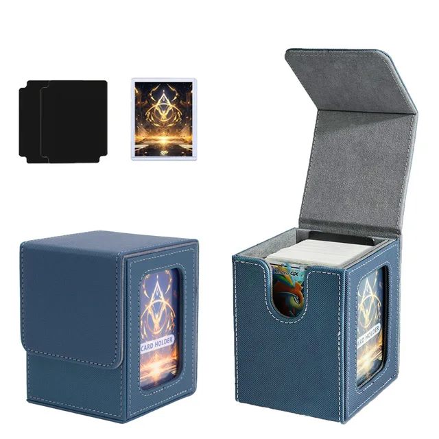 100+ Load Trading Card Deck Box with 2 Dividers Game Card Storage Box PU Magnet Sports Card Deck Case Holder