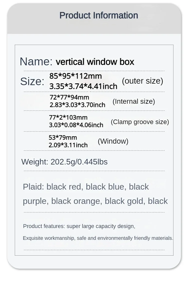 Internal size:72*77*94mm/2.83*3.03*3.70inch