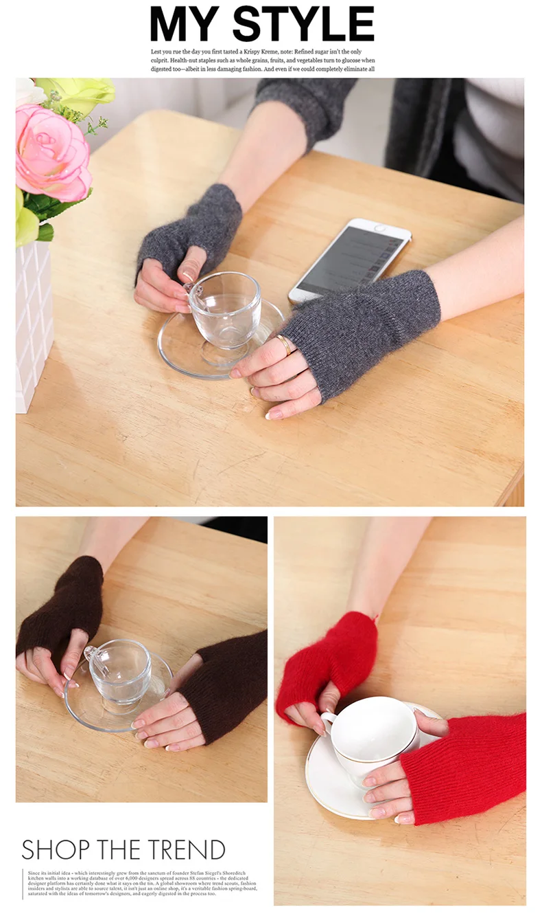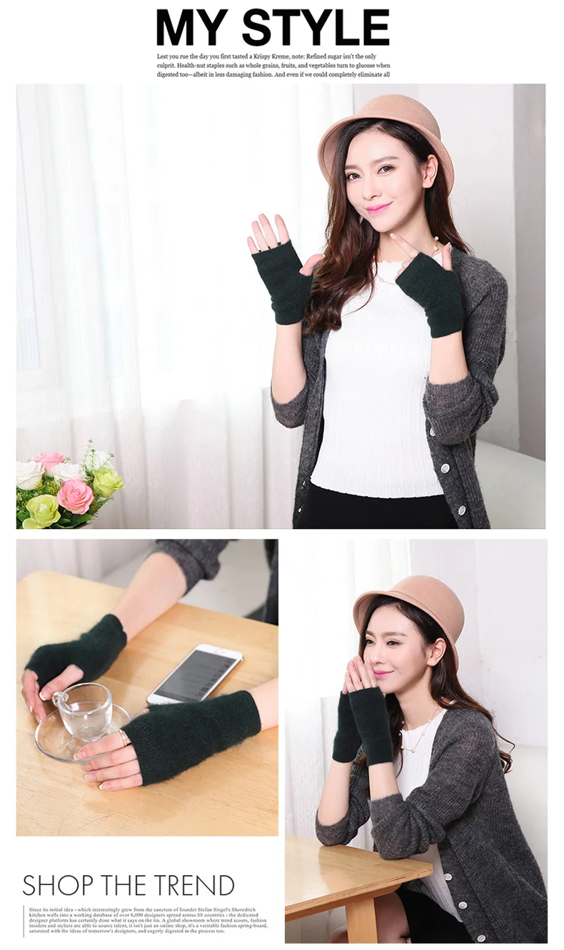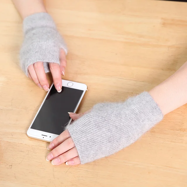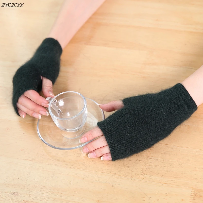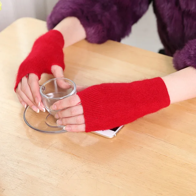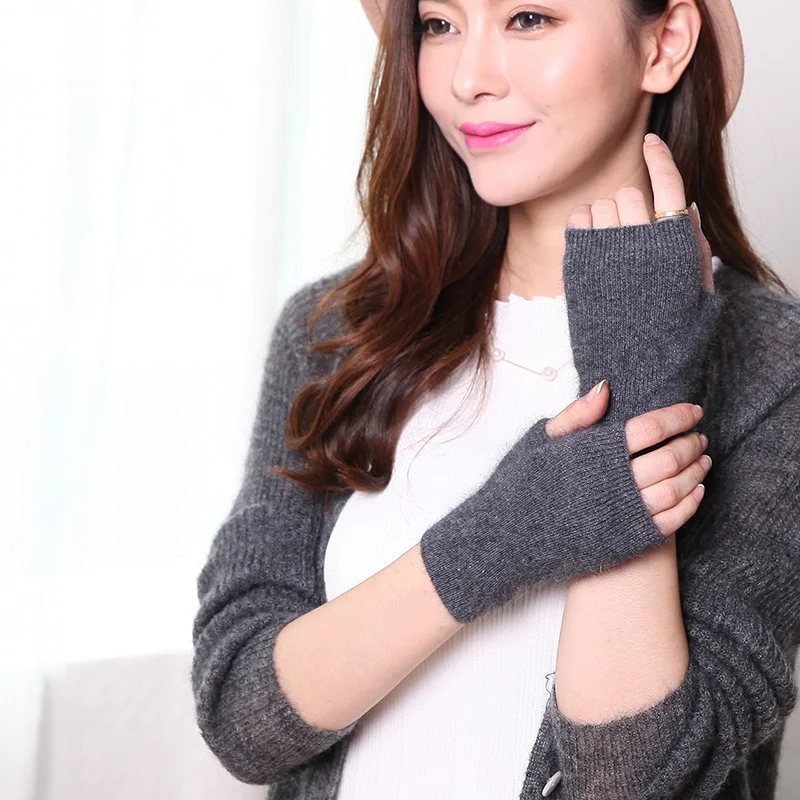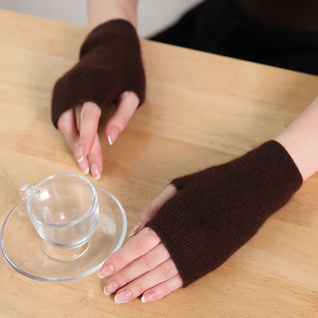 100% Mink Cashmere Knitted Gloves Winter Women’s Gloves Half Finger Writing Office Cycling Warm